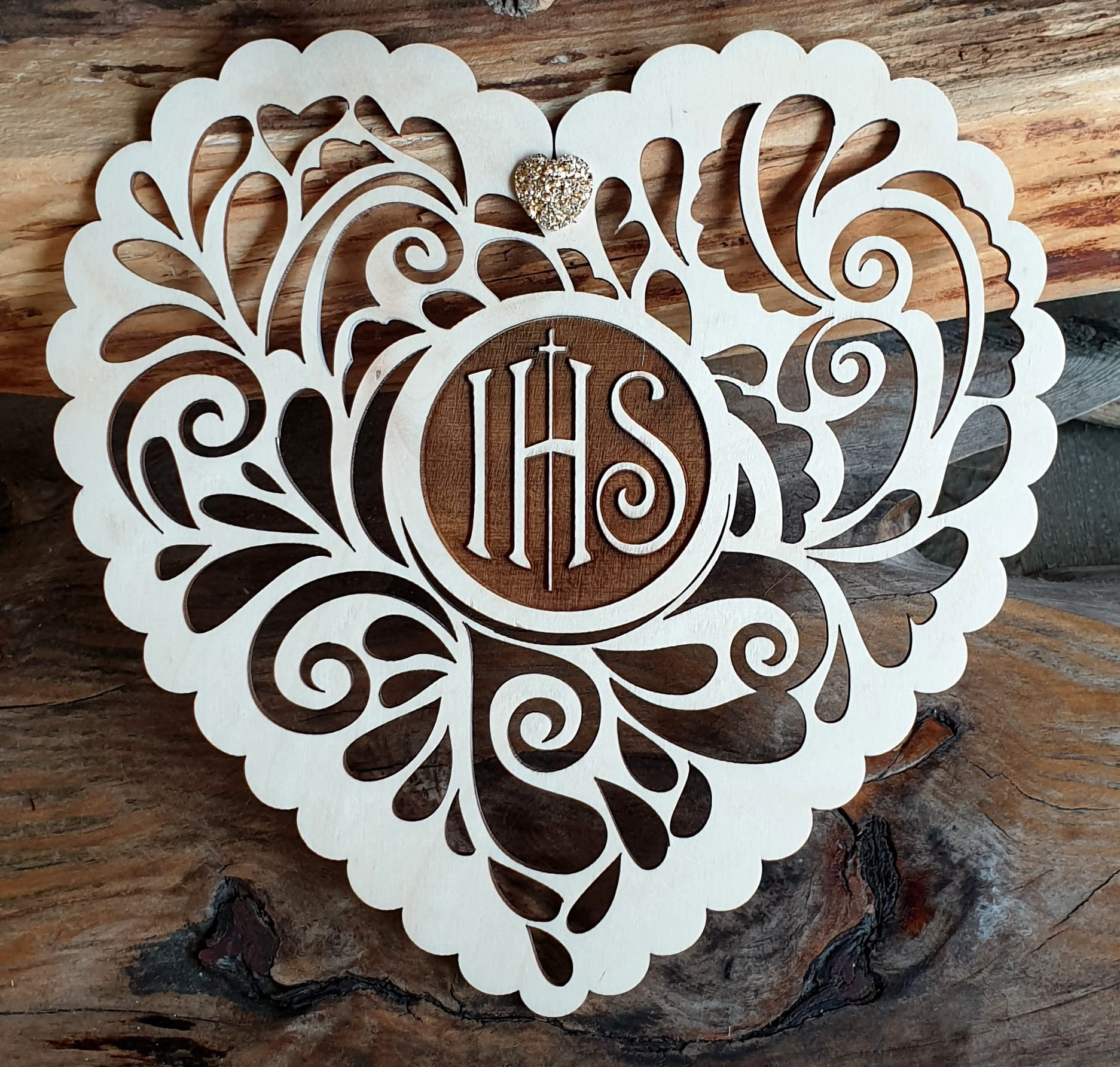 ✔ Ażurowe serce z symbolem IHS z funkcją magnesu
