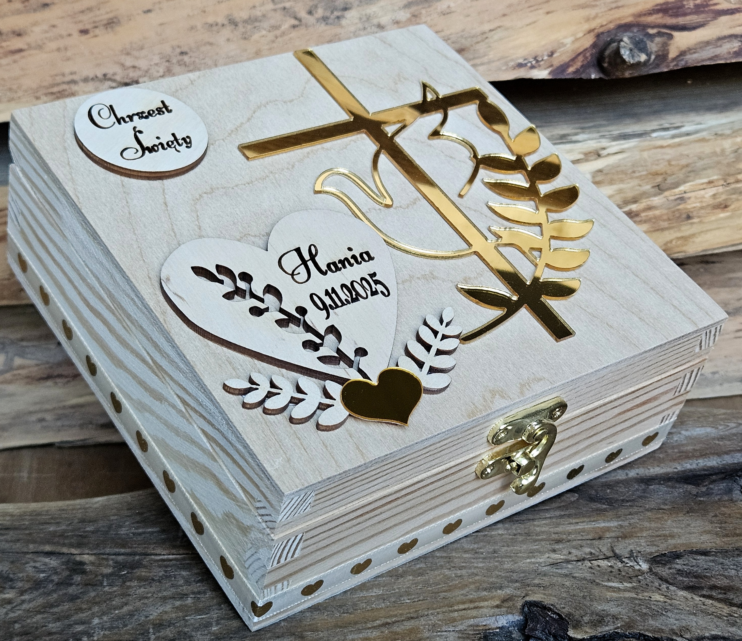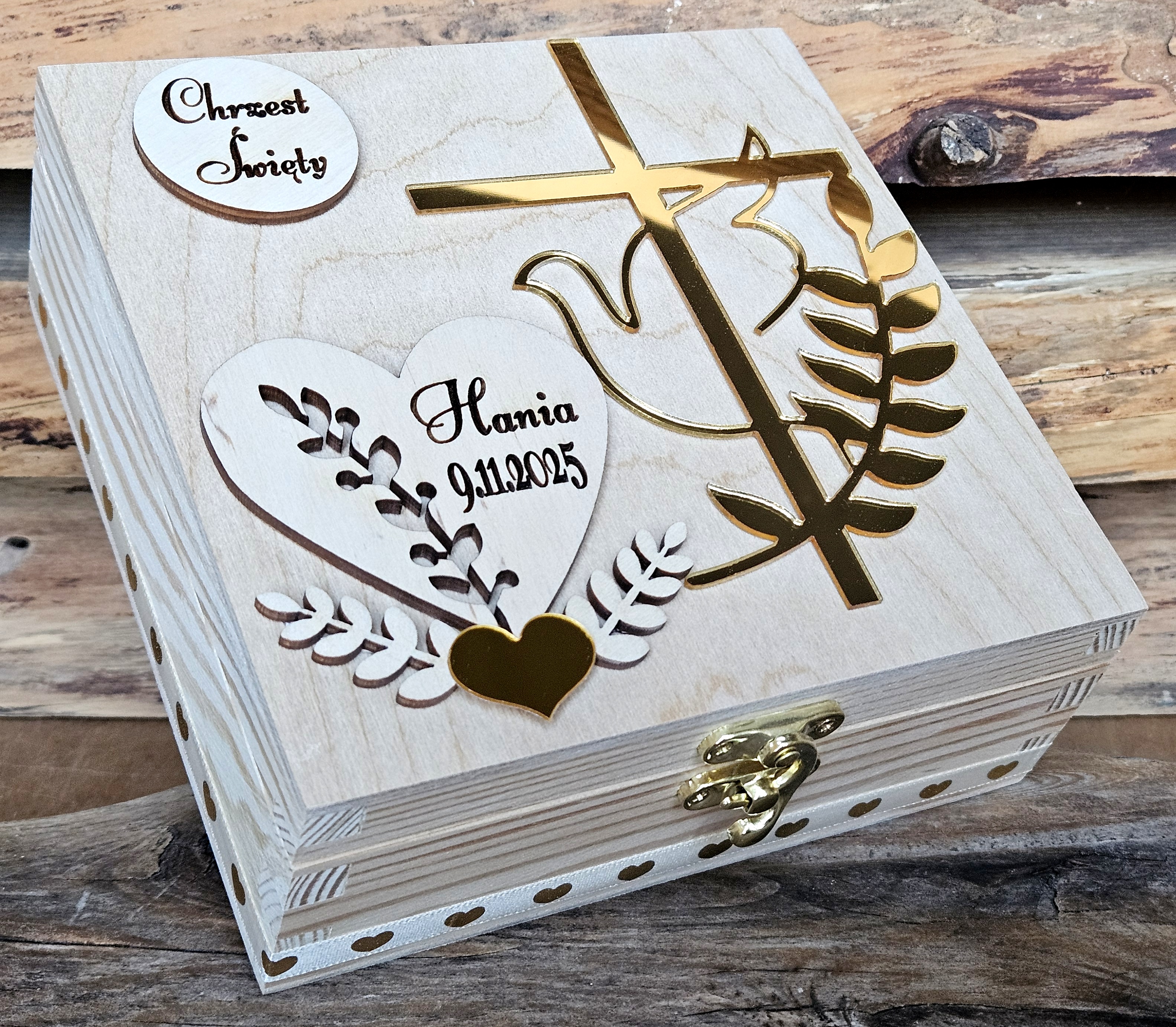 Pamiątka Chrztu Świętego – Drewniana Szkatułka z Personalizacją