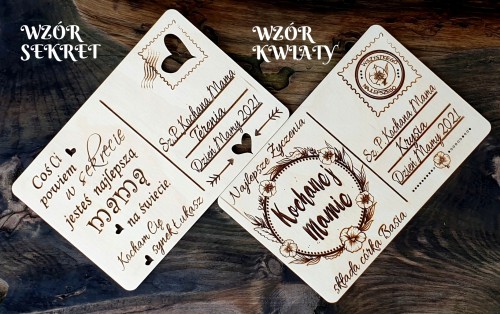 - wybrany wzór pocztówki: SEKRET lub KWIATY,