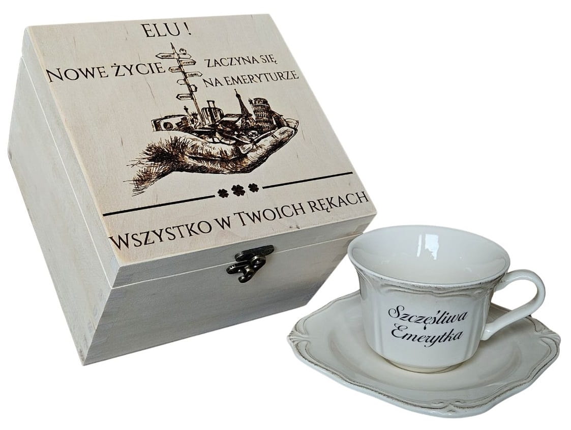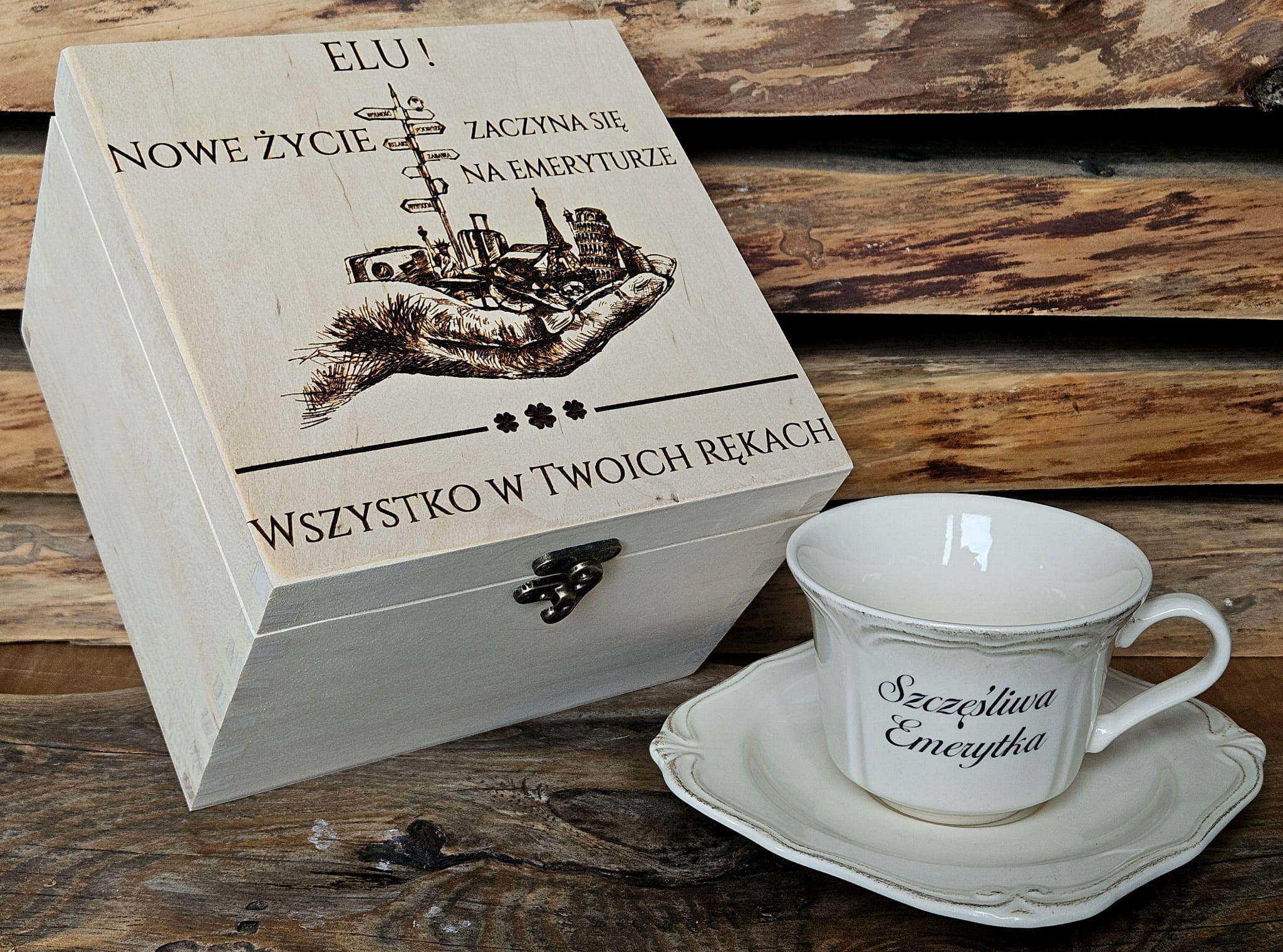 Dla emerytki prezent z okazji przejścia na emeryturę szkatułka, filiżanka lub kubek