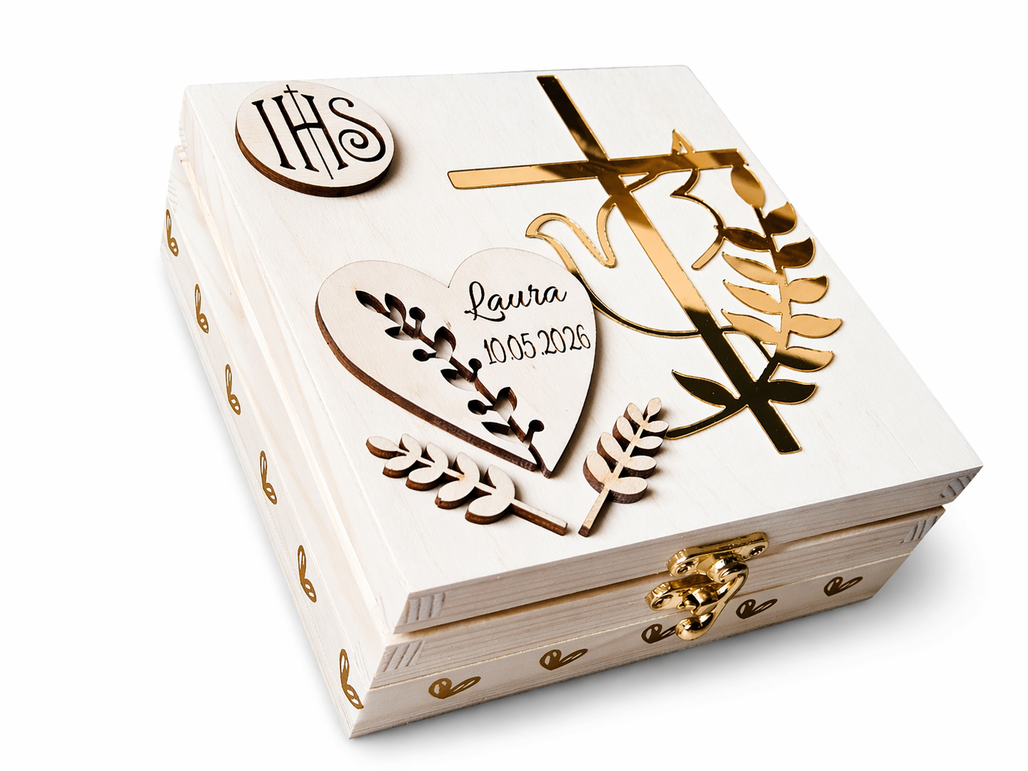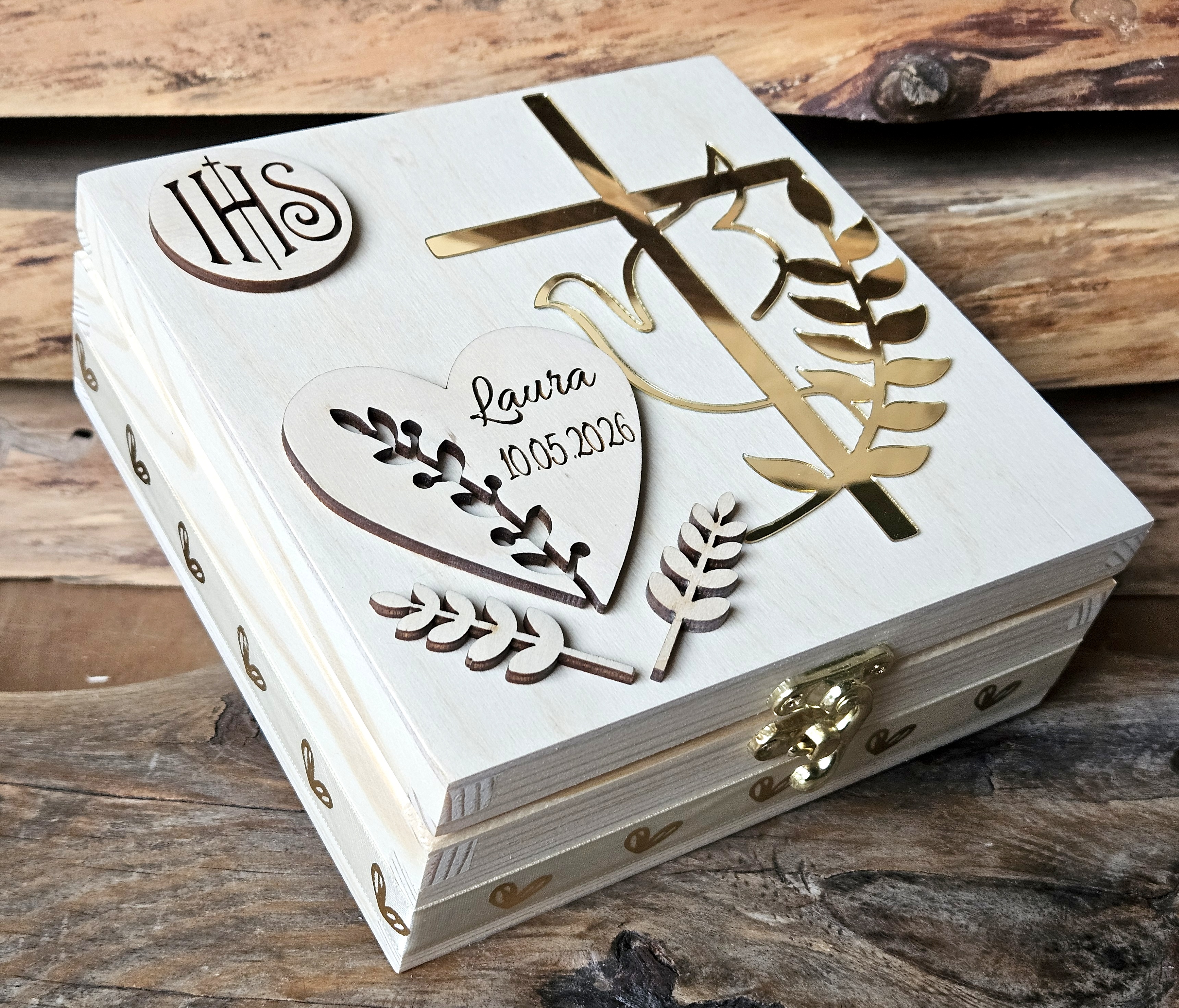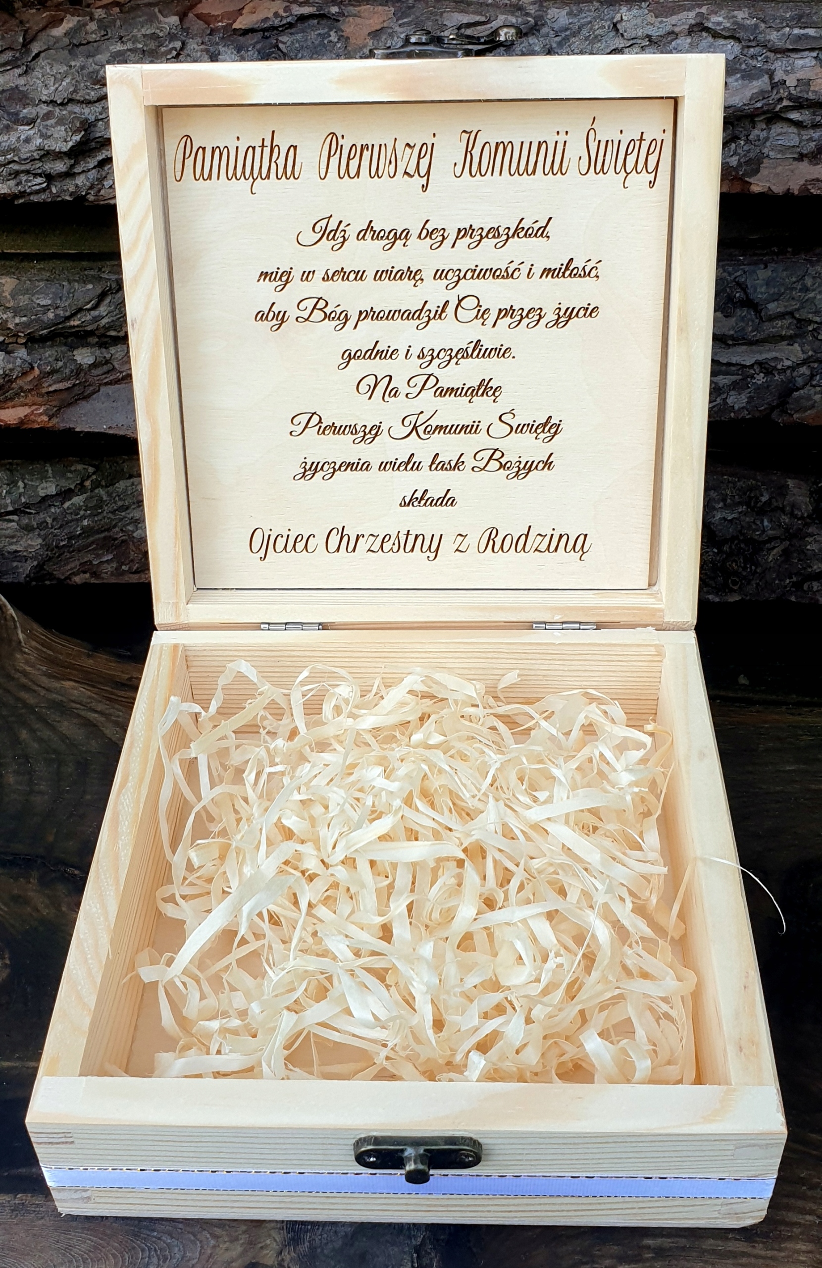 Drewniana szkatułka komunijna z personalizacją