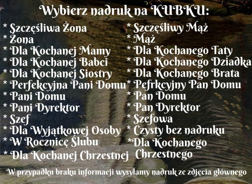 Dodatkowo na ceramice WYBIERZ jeden z poniższych nadruków.