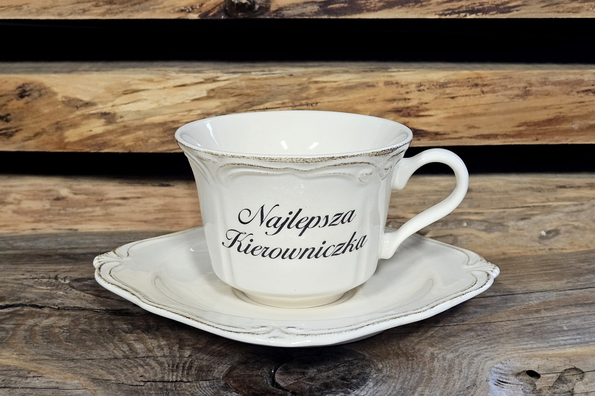 - 1szt. ceramiczna filiżanka z nadrukiem "Najlepsza Kierowniczka",