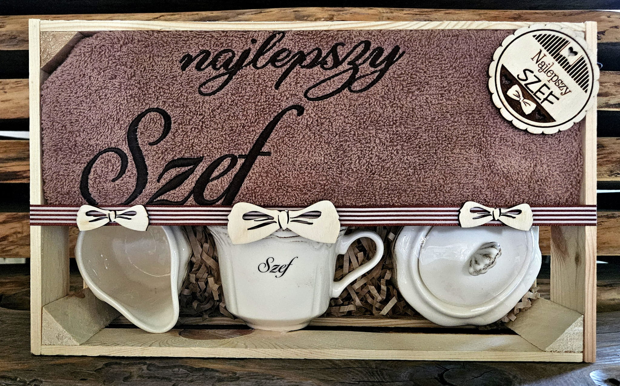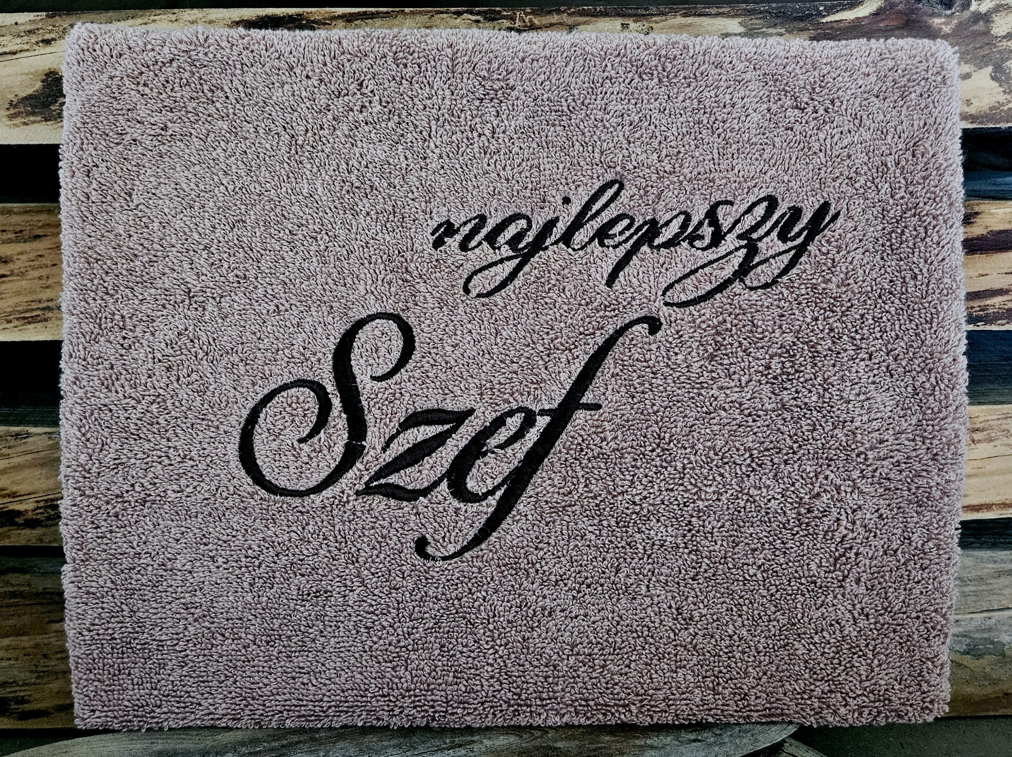 - 1szt. brązowy ręcznik 50x100cm z haftem "Najlepszy Szef",