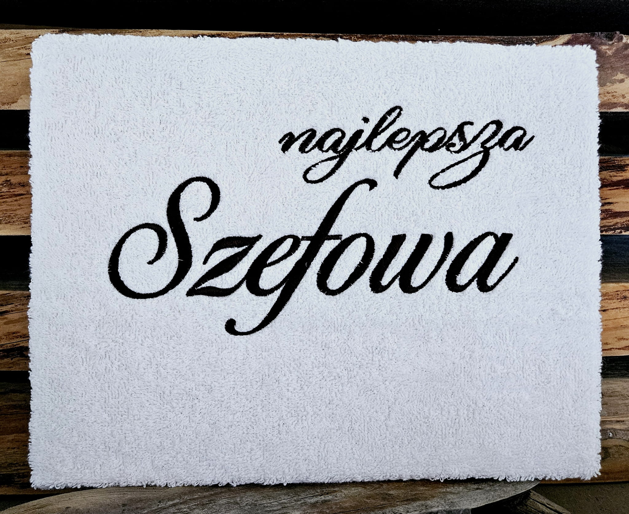 - 1szt. kremowy ręcznik kuchenny 50x100cm z haftem "Najlepsza Szefowa",