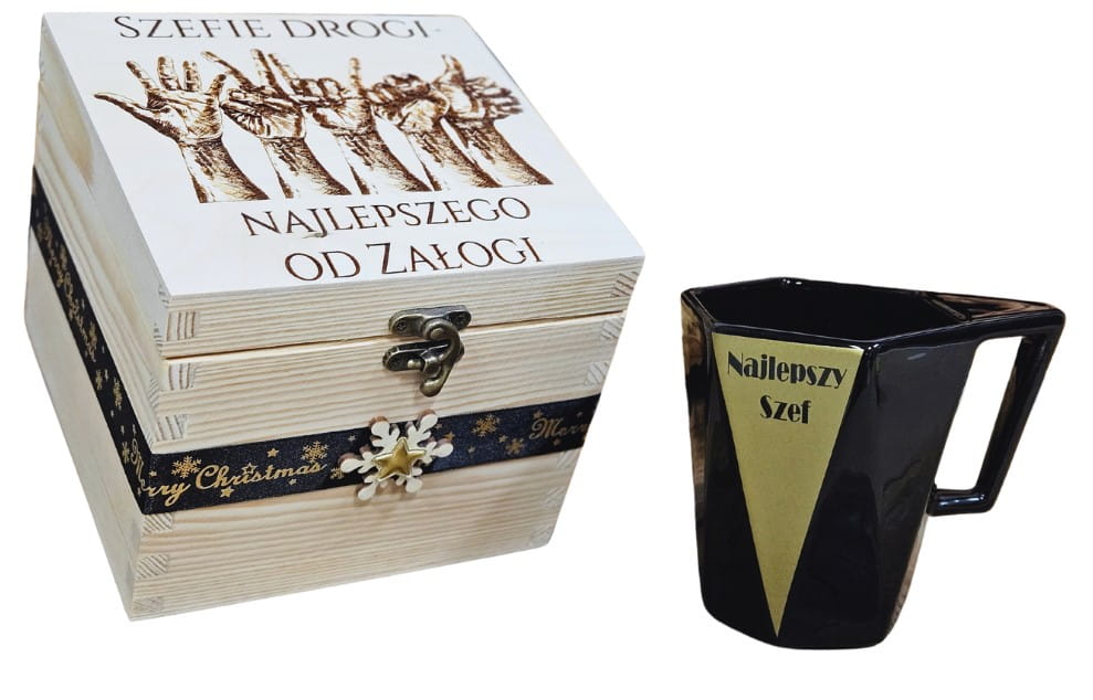 Elegancki zestaw na Święta dla Szefa szkatułka organizer kubek lub filiżanka prezent dla niego