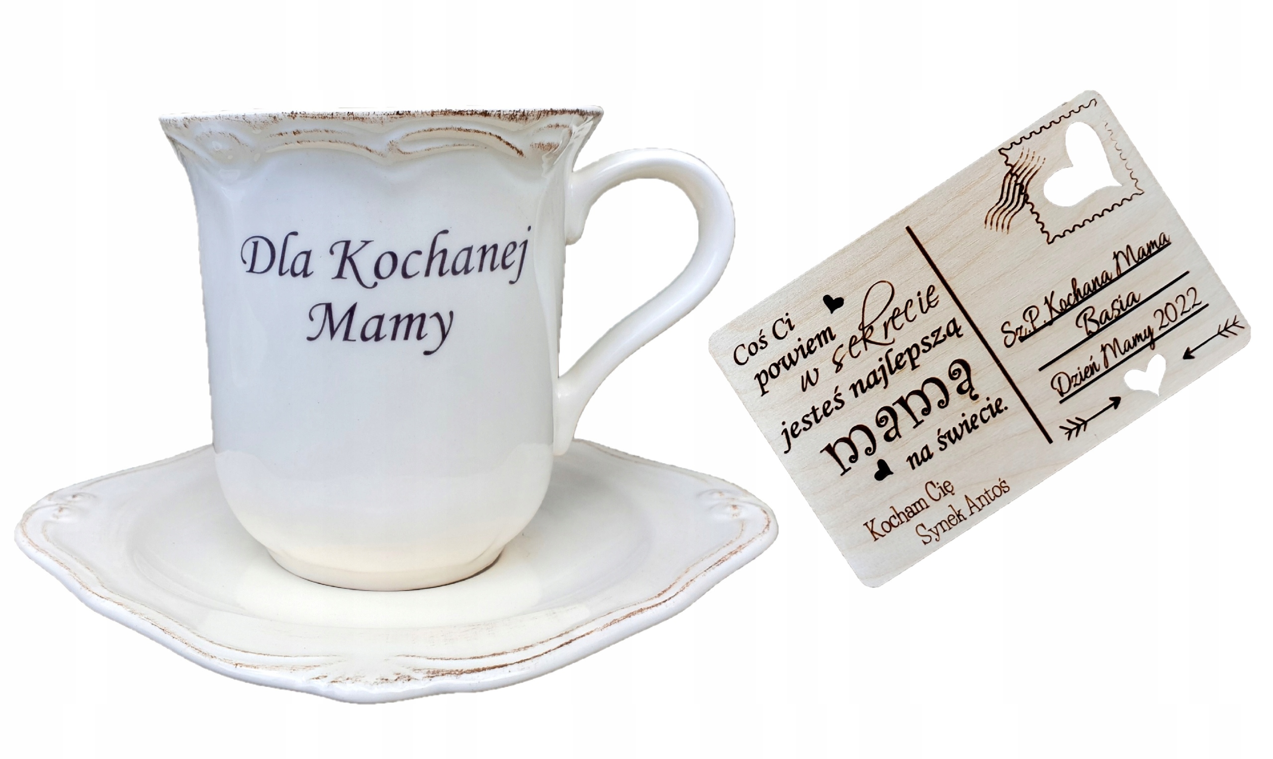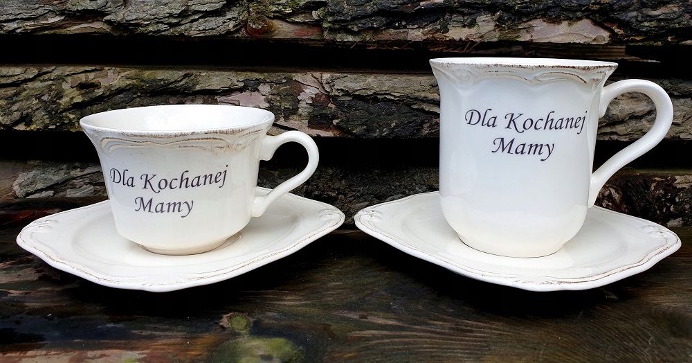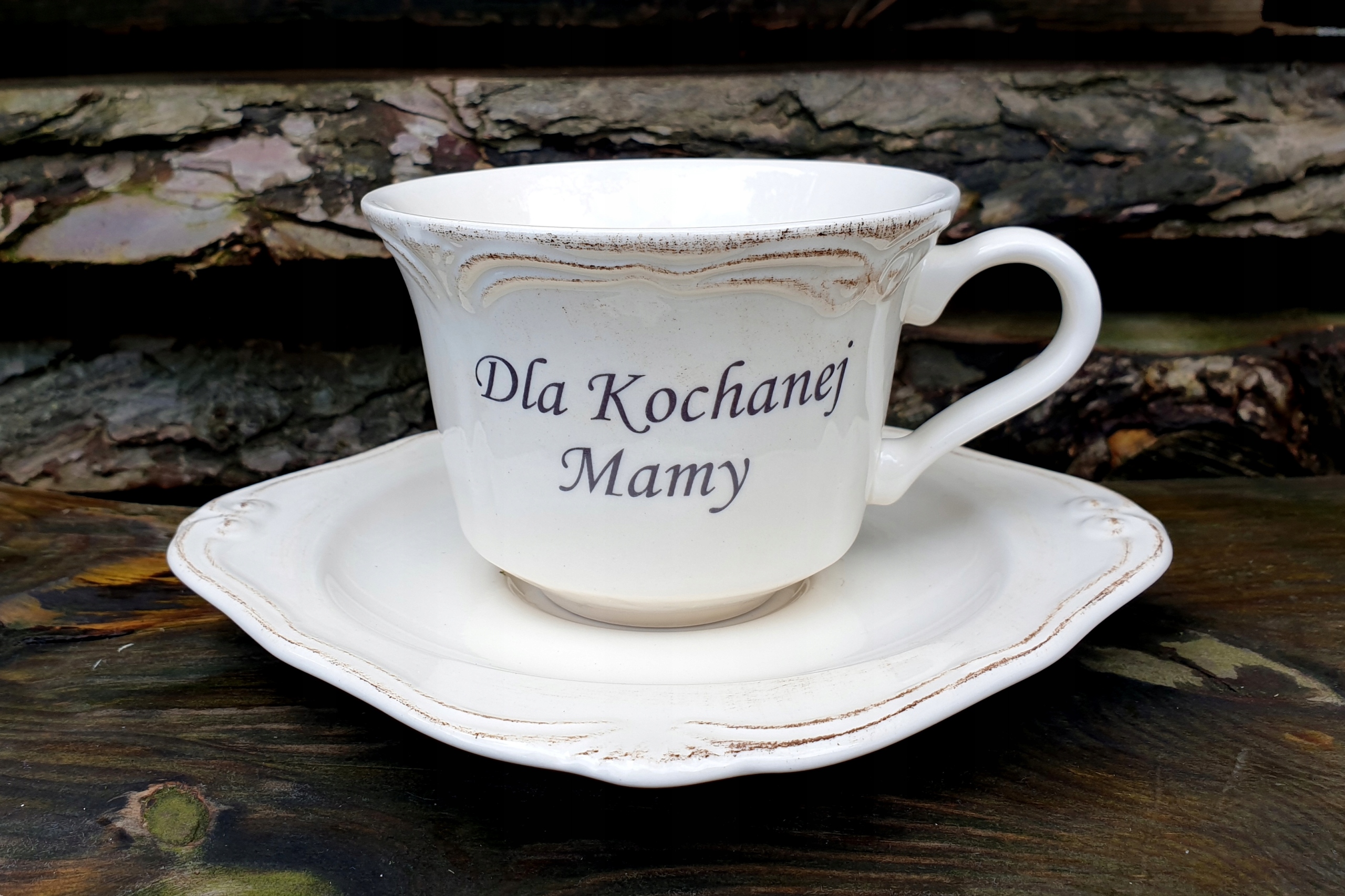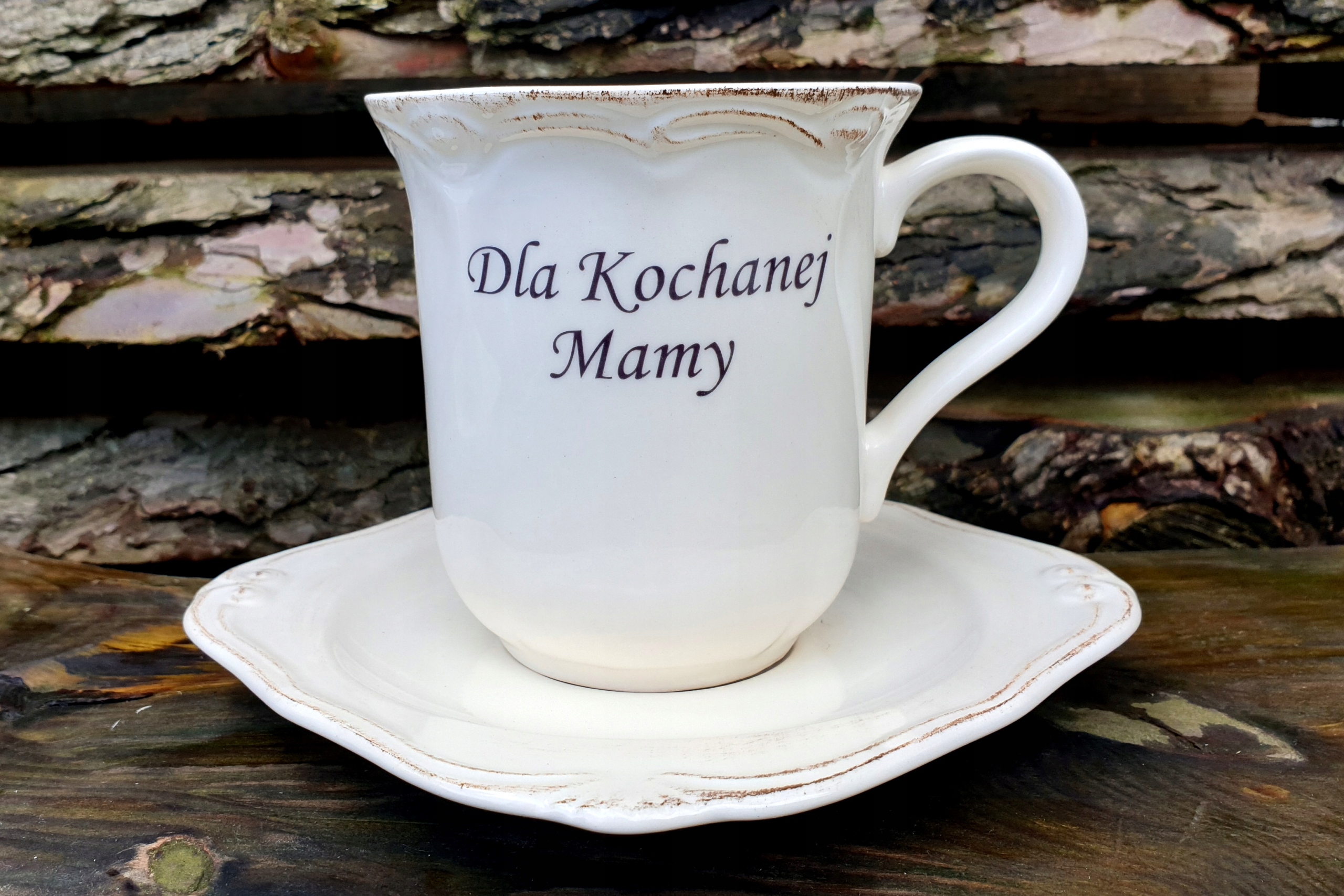 - 1szt. ceramiczna filiżanka lub kubek z nadrukiem dla Mamy lub Taty,