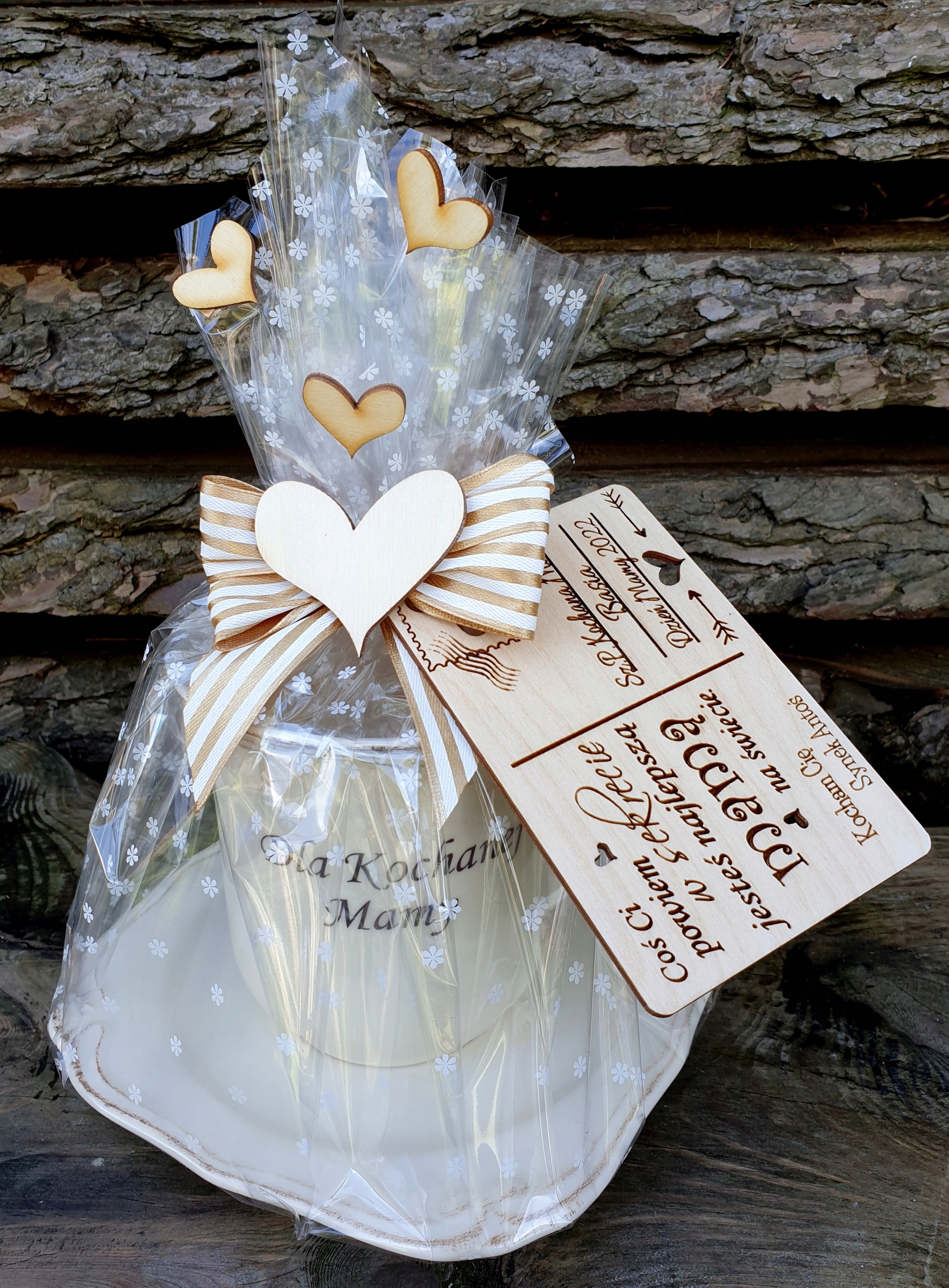 Twój prezent stanie się wyjątkowy dzięki życzeniom na drewnianej kartce magnetycznej.