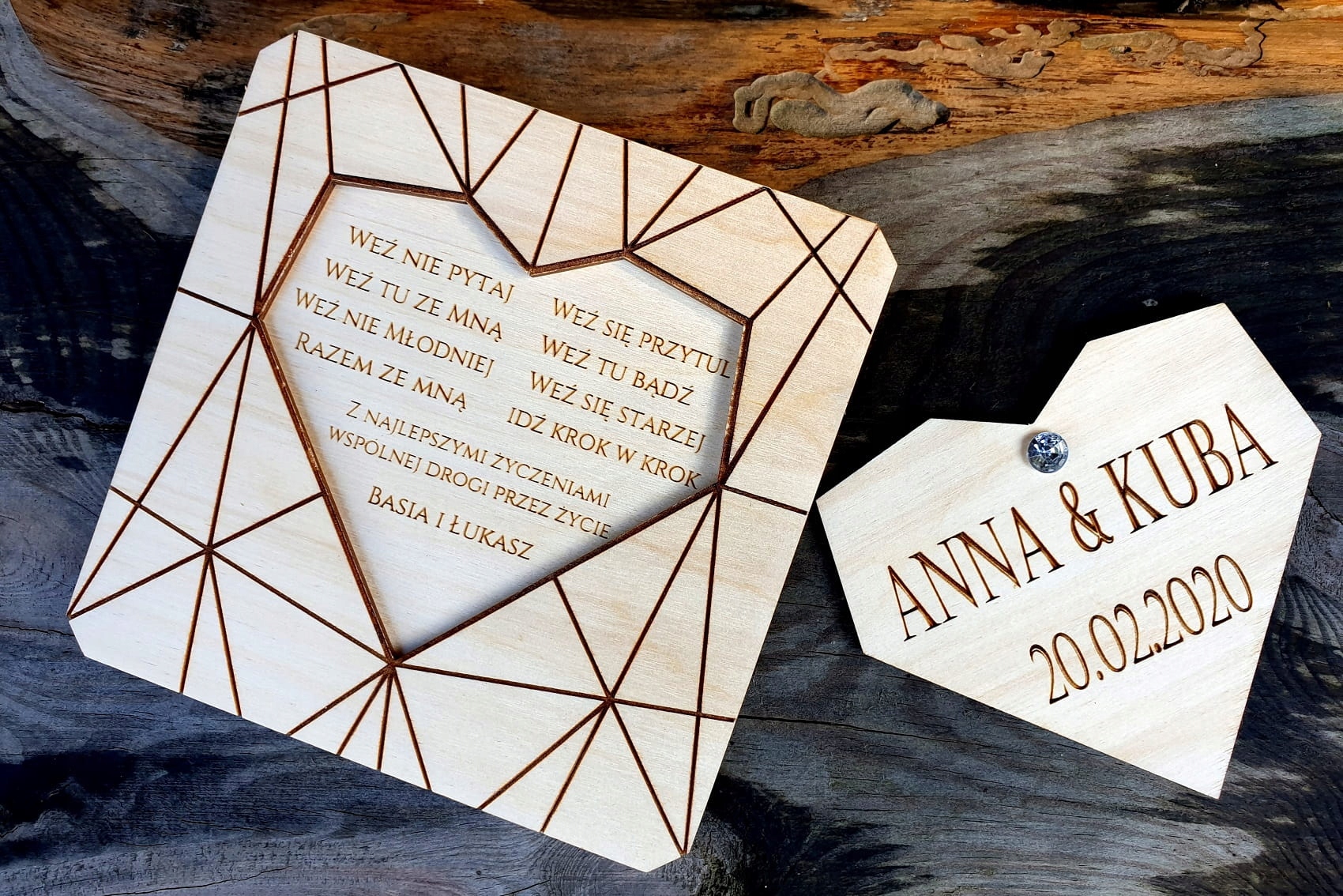 ŻYCZENIA ŚLUBNE W DREWNIE SĄ CIEKAWYM WYBOREM I ZAWSZE SPOTKA SIĘ Z CIEPŁYM PRZYJĘCIEM.