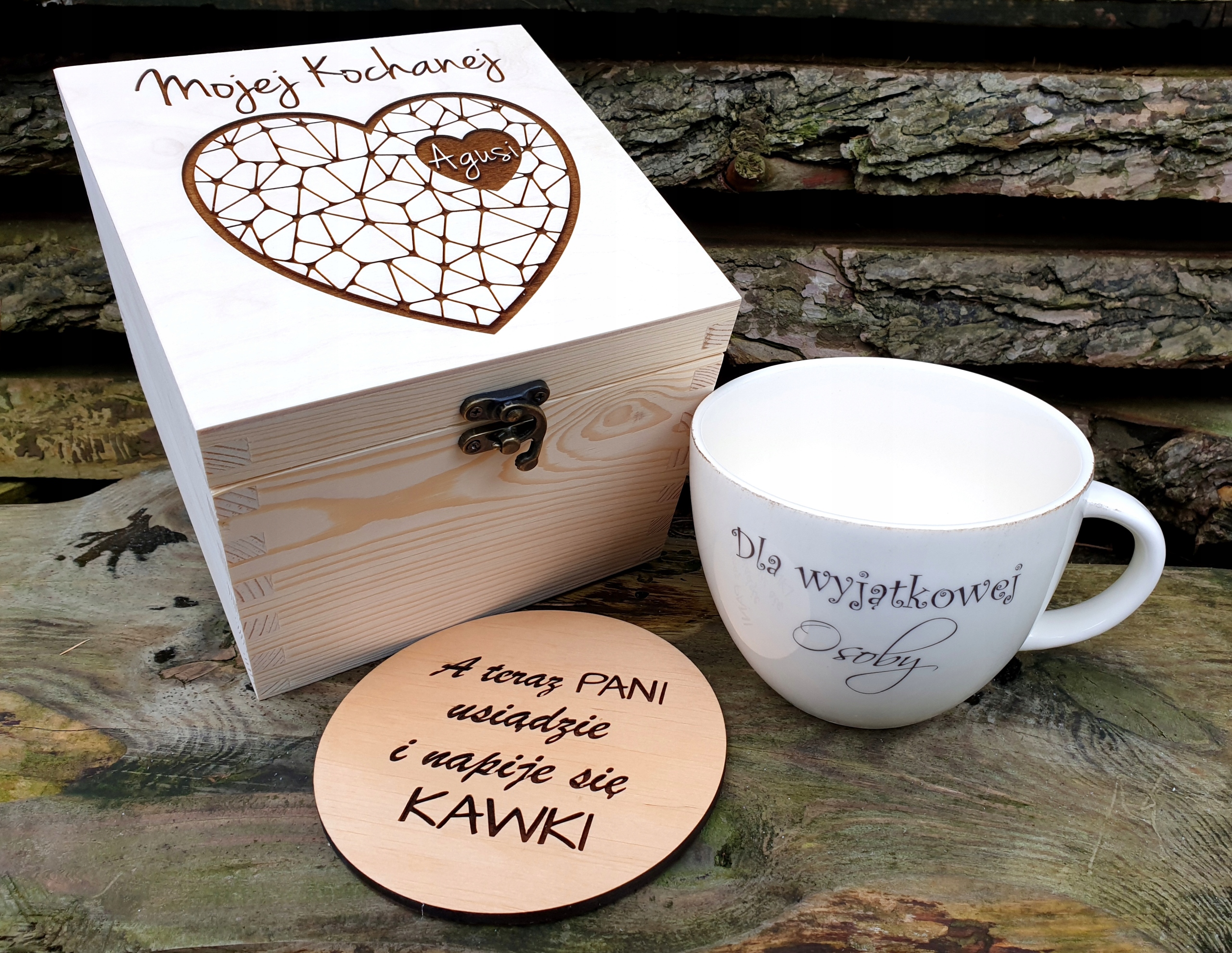 - krótki tekst do graweru na wieku szkatułki (maksymalnie trzy słowa np. Mojej Kochanej).