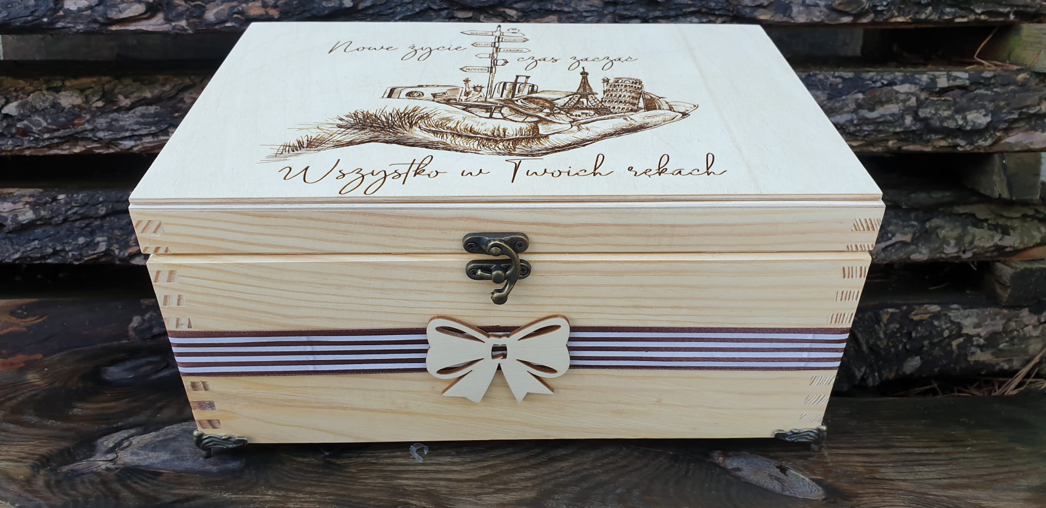 - 1szt. Elegancka Drewniana Szkatułka do dalszego wykorzystania np. na tajne plany władzy na światem,
