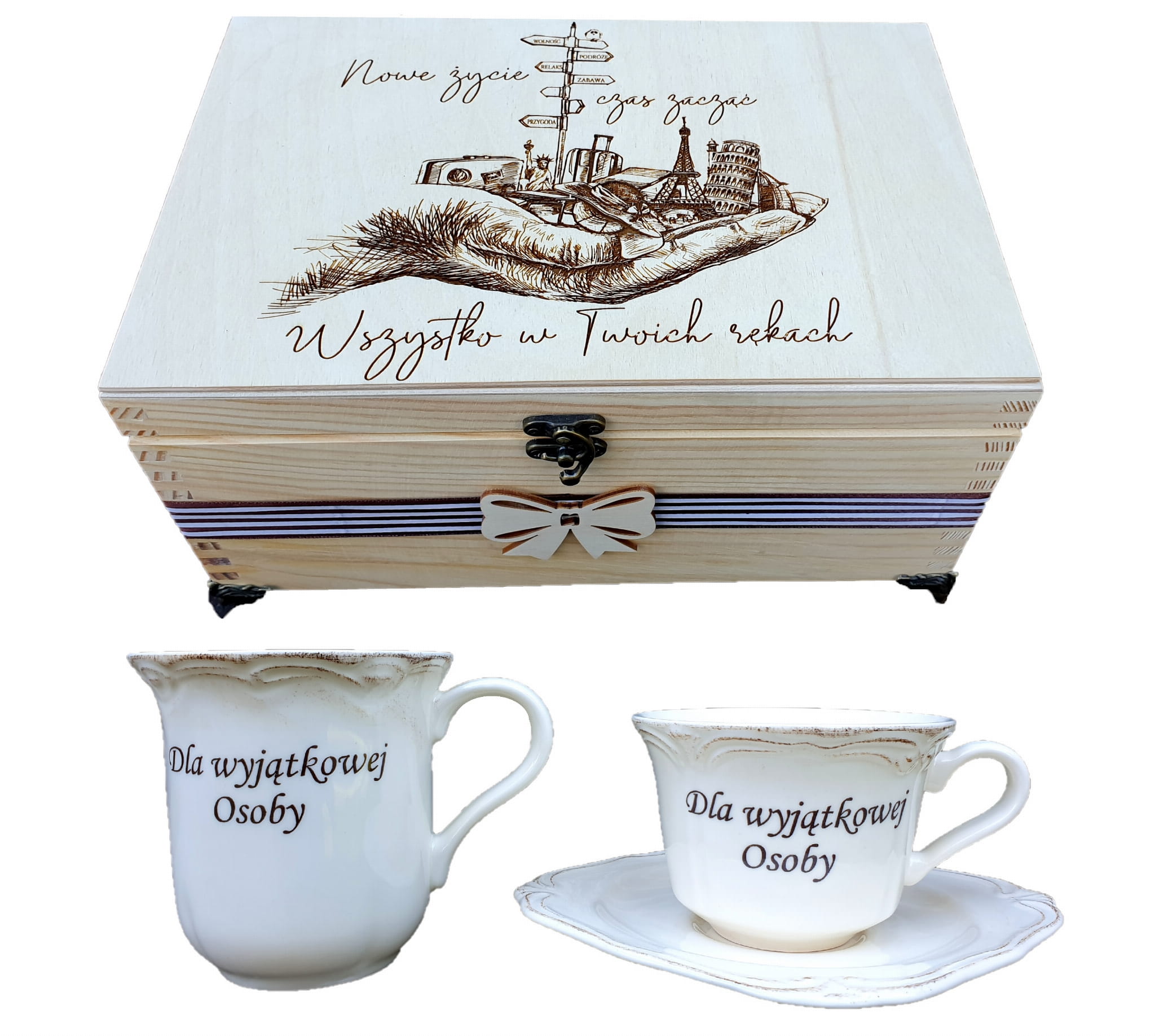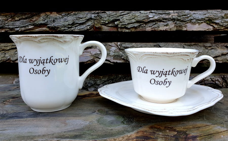 *Możesz wybrać nadruk na filiżance i kubku z listy przedstawionej w galerii.