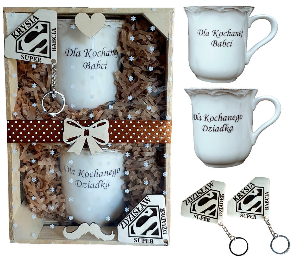 Kubki Breloki z grawerem imię, prezent na Dzień Babci i Dziadka NEW