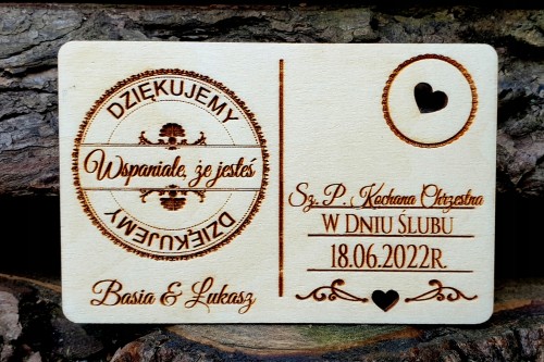- od kogo mają być życzenia na drewnianej kartce np. Basia & Łukasz,