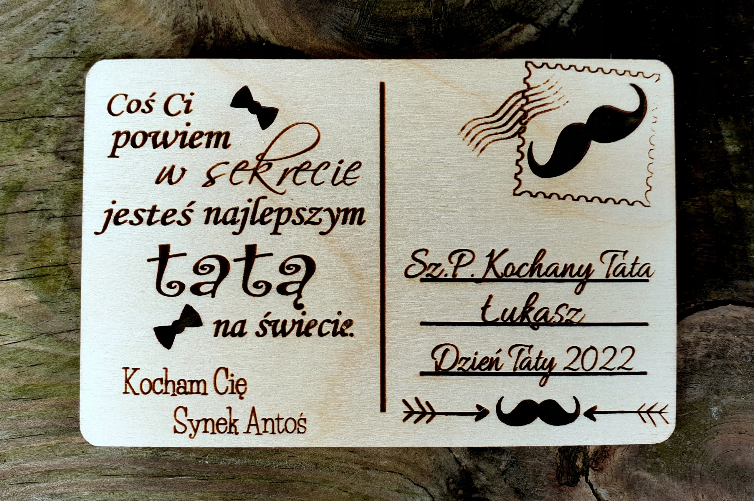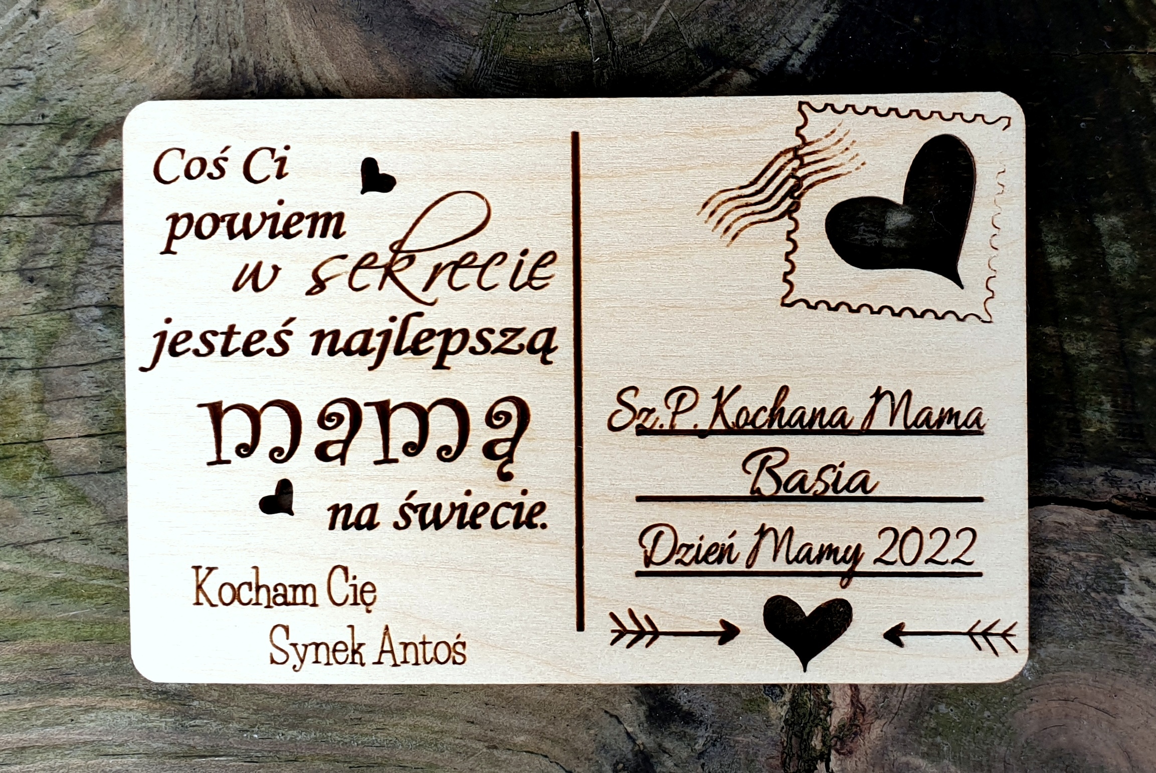 To niezwykły podarunek dzięki życzeniom na drewnianej pocztówce magnetycznej.