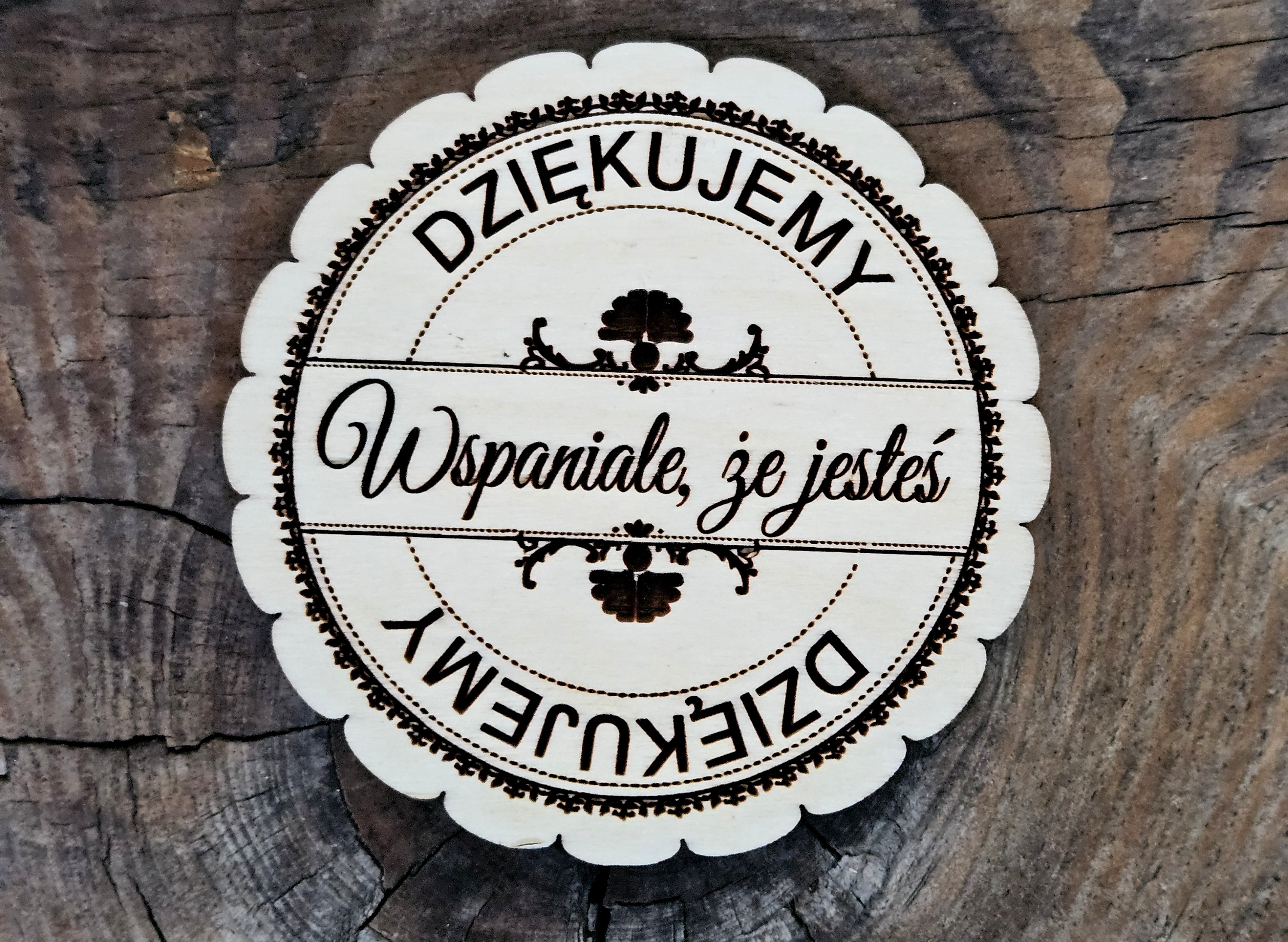 ✔ Dekoracyjny drewniany magnes z napisem „Dziękujemy. Wspaniale, że jesteś”