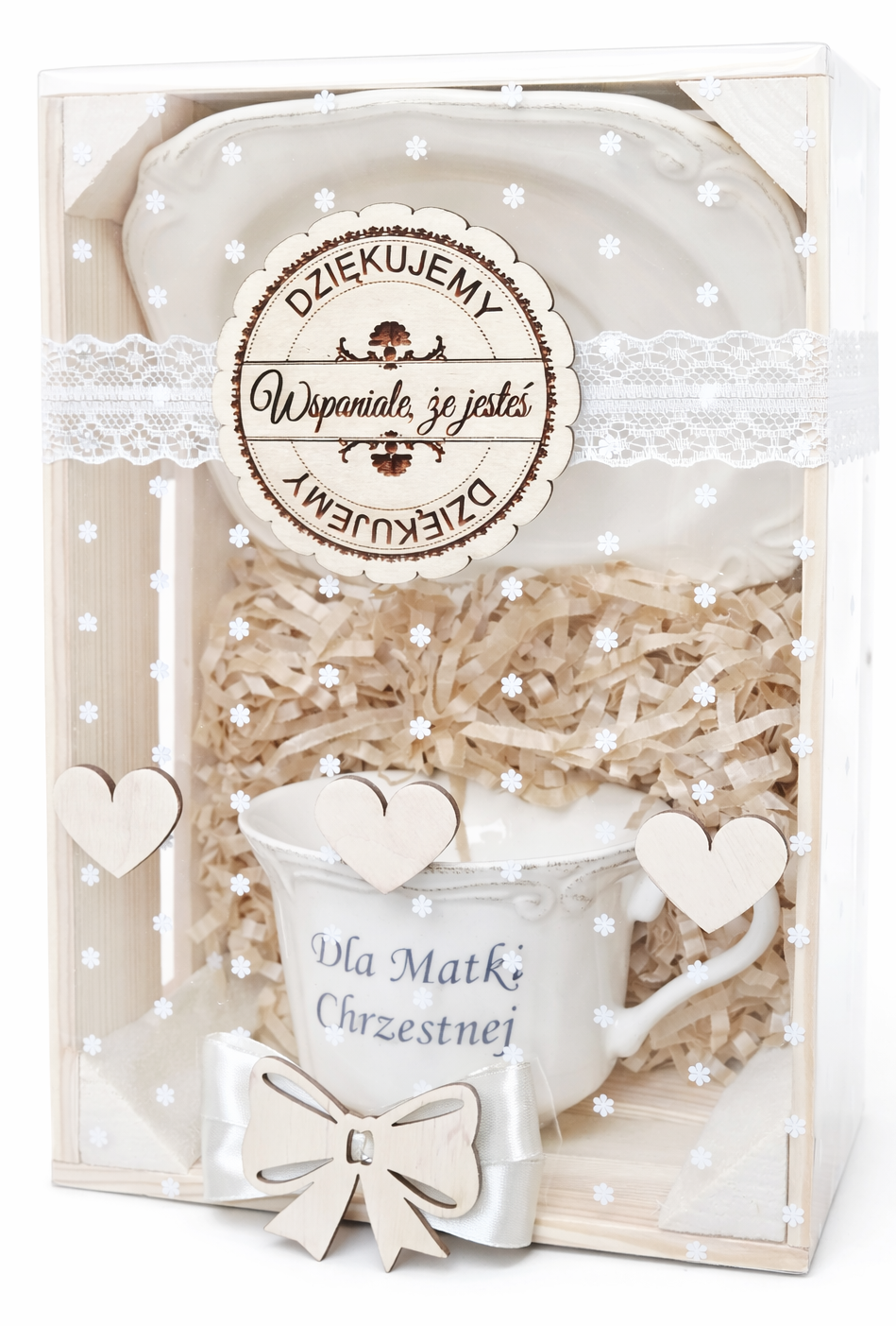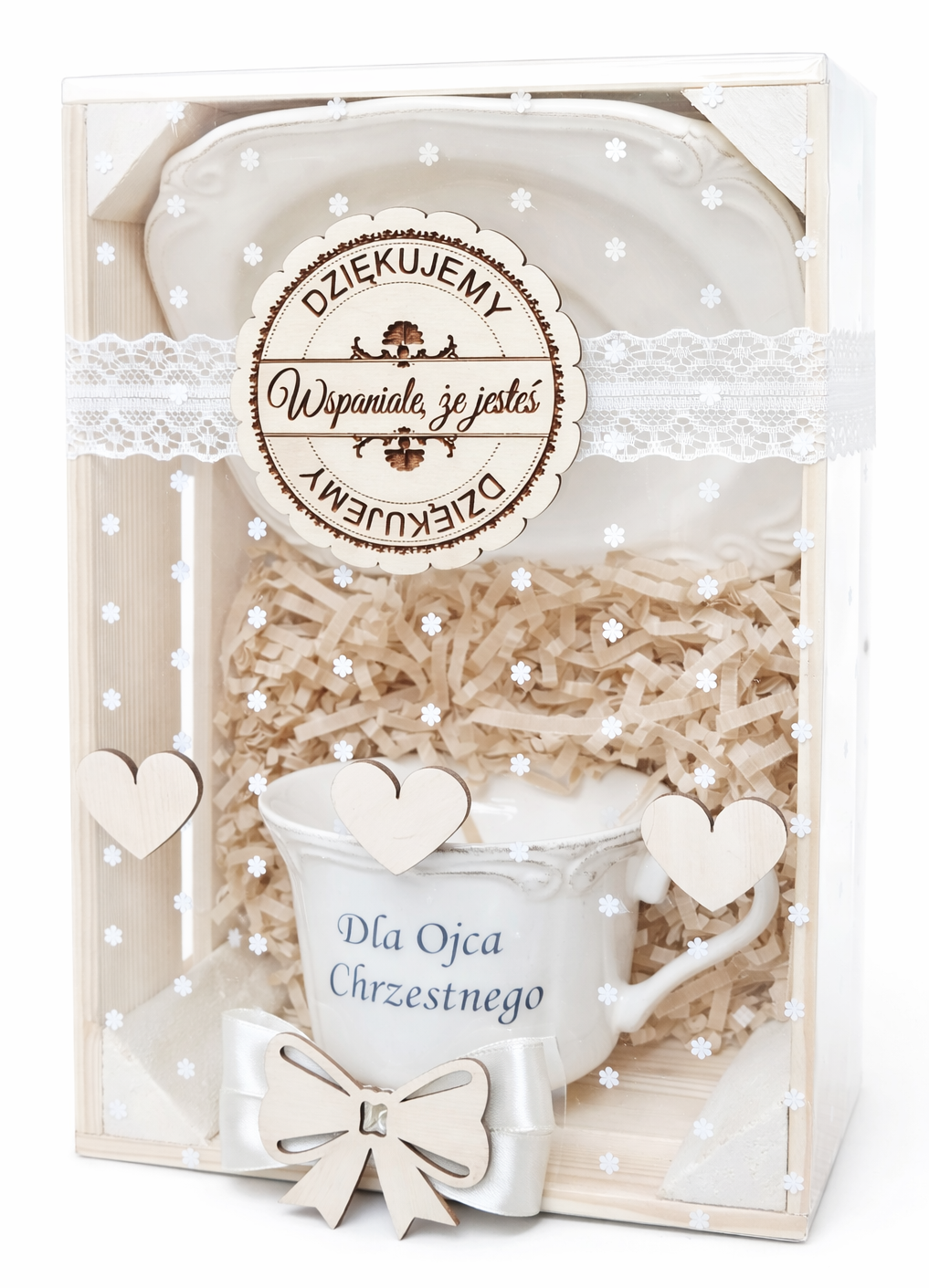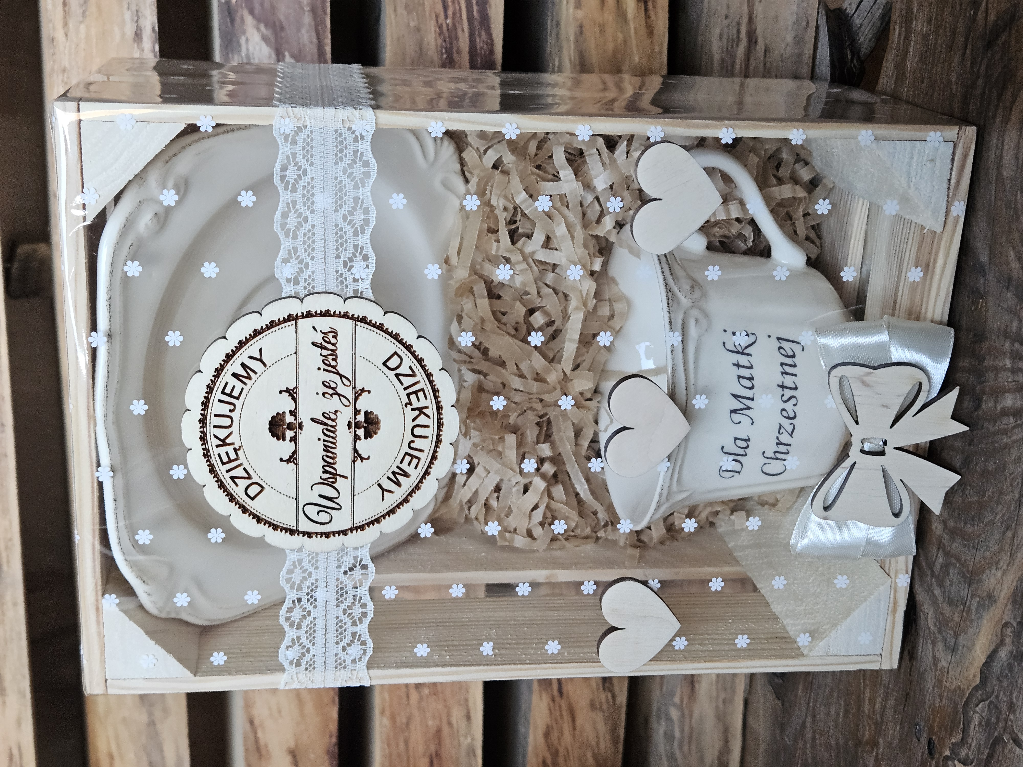 Elegancki zestaw prezentowy dla Chrzestnej lub Chrzestnego w ozdobnym opakowaniu