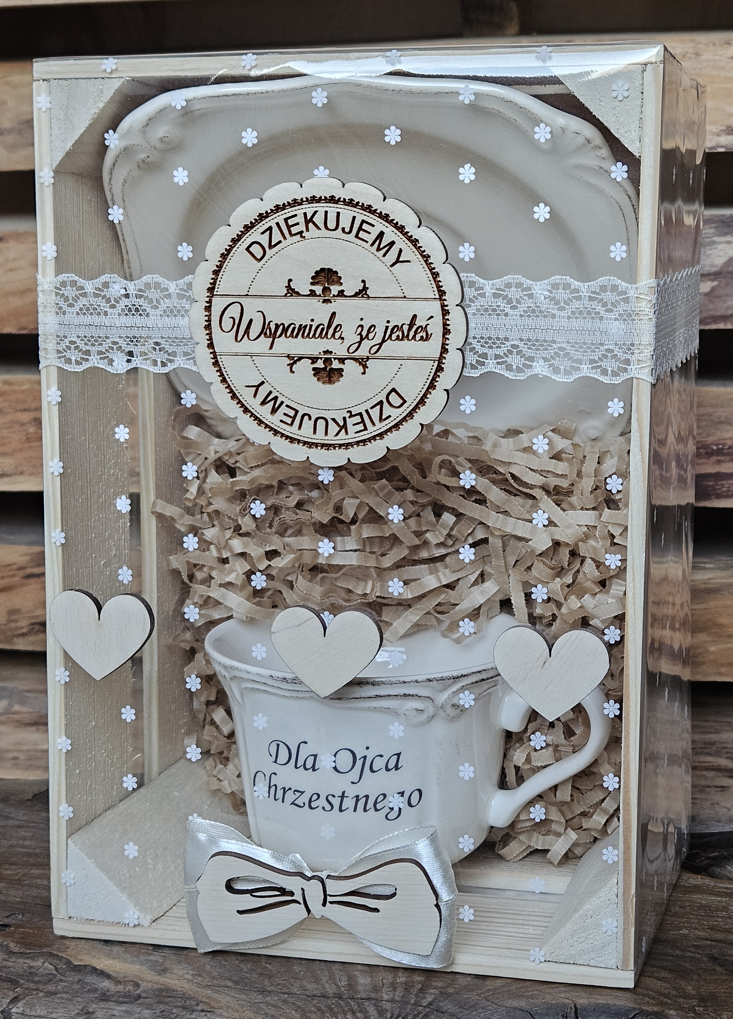 Szukasz pięknego i gotowego do wręczenia prezentu dla Matki Chrzestnej lub Ojca Chrzestnego? Ten elegancki komplet z ceramiką, ozdobnym opakowaniem i dekoracyjną tabliczką to wyjątkowy sposób, by podziękować za obecność, wsparcie i ważną rolę w życiu dziecka.