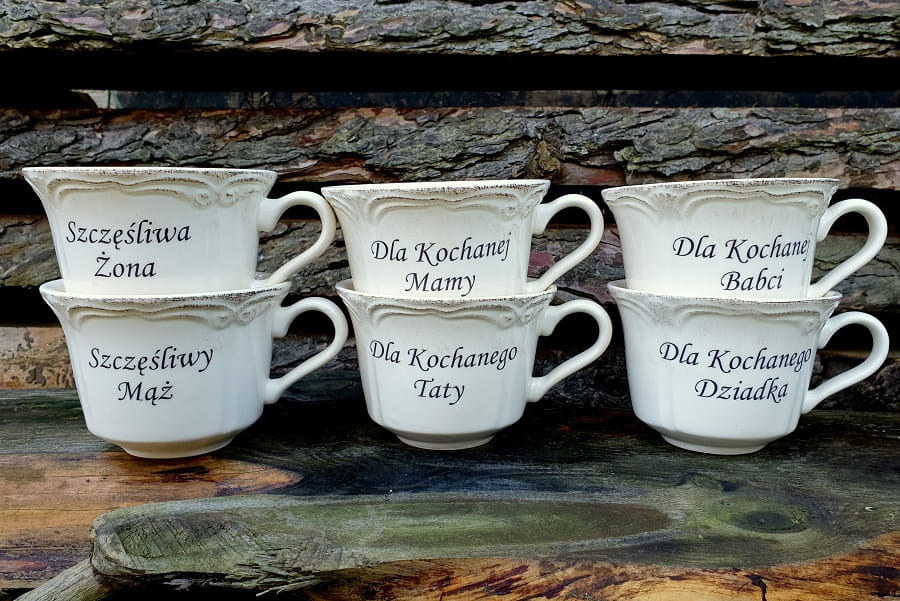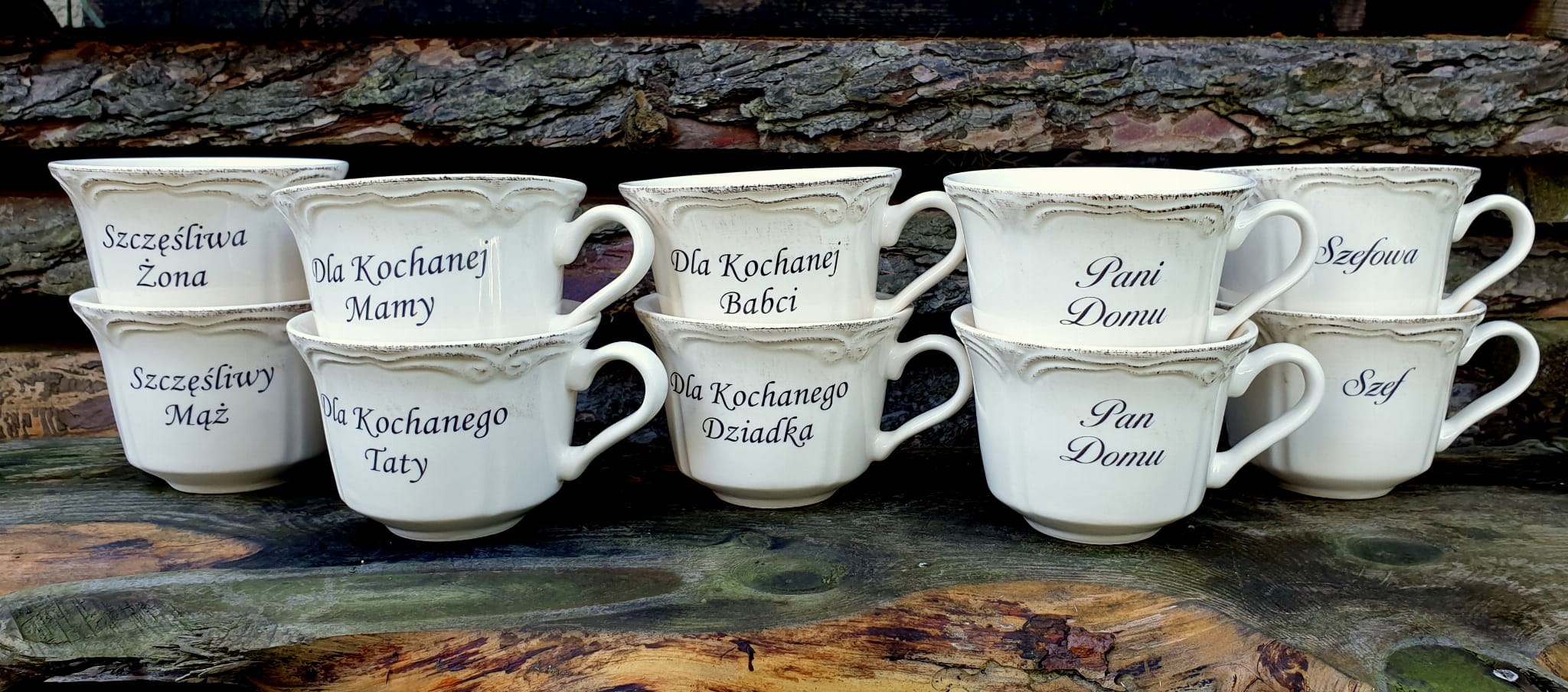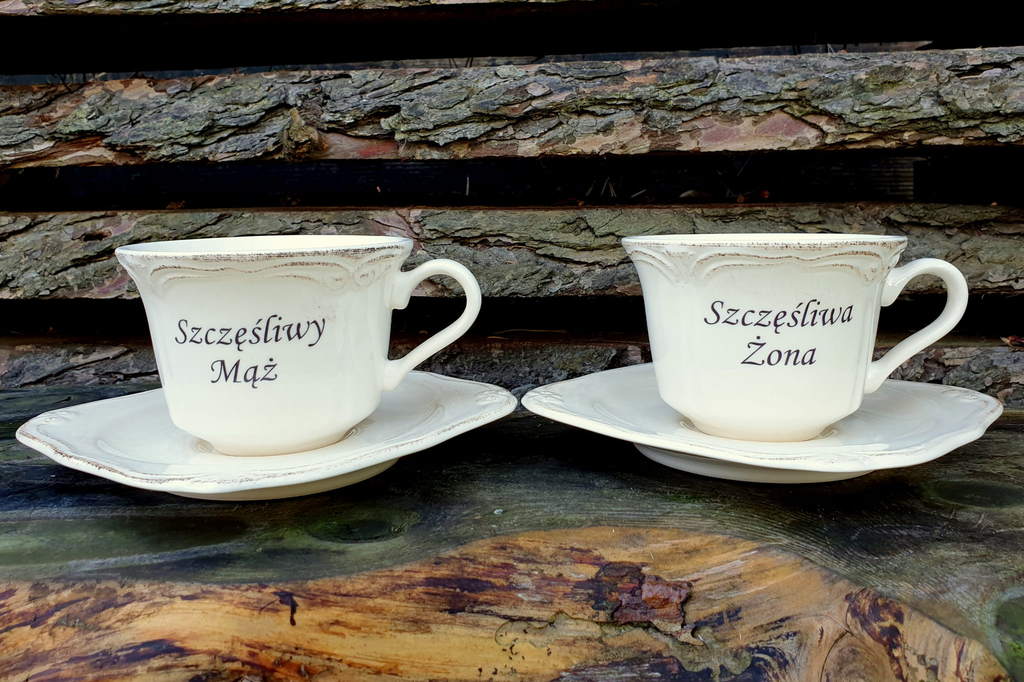 - 2szt. ceramicznych filiżanek z WYBRANYM nadrukiem