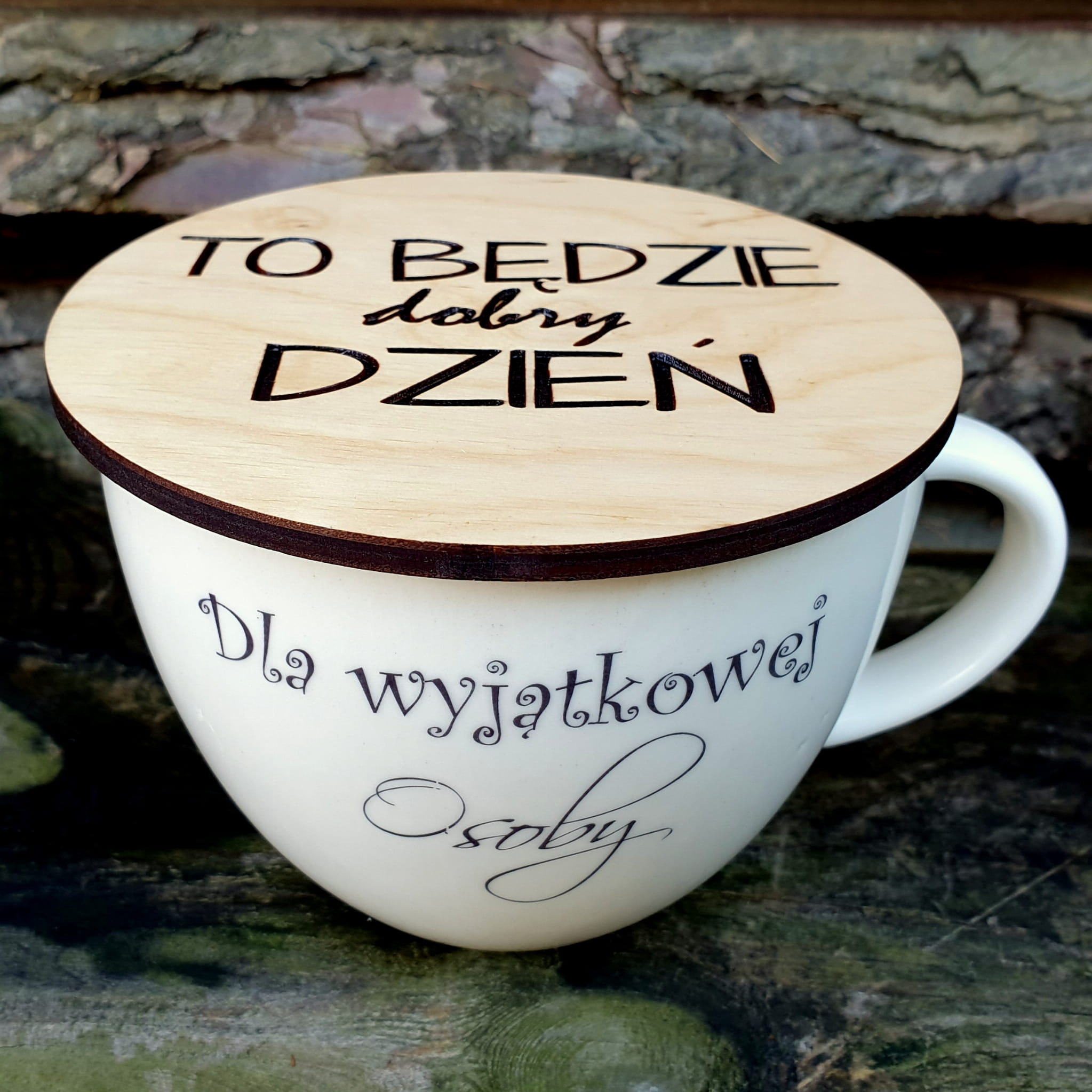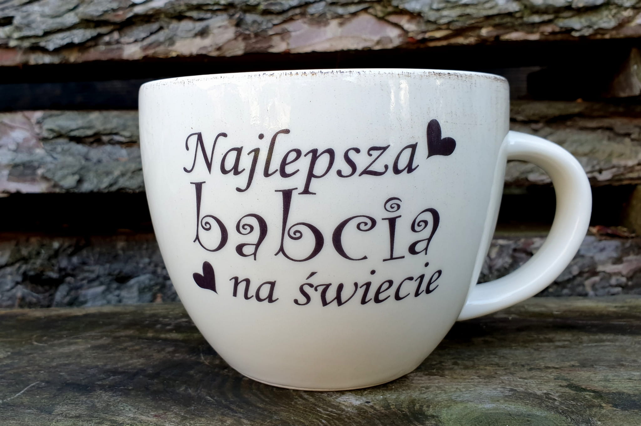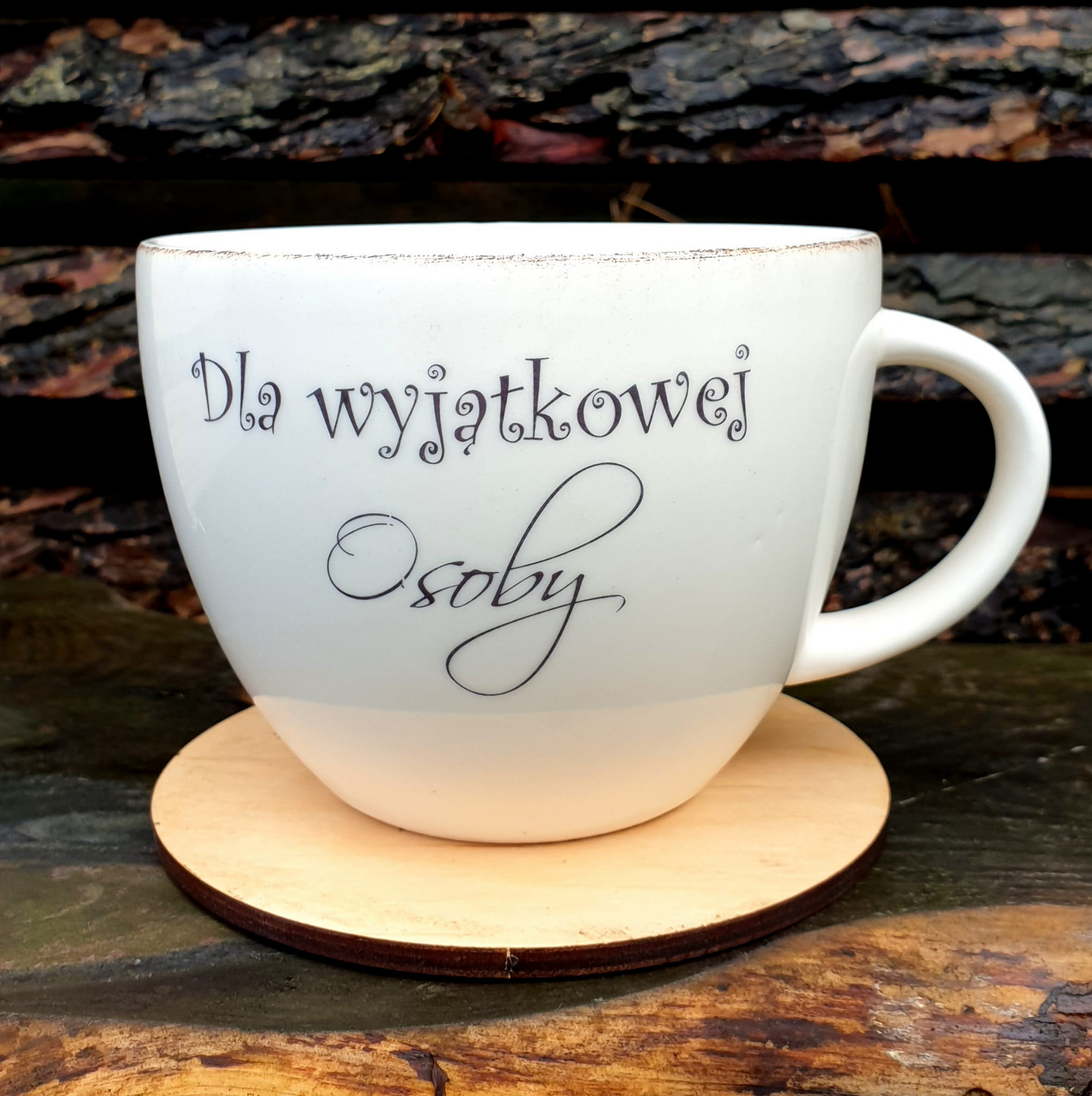 - wybrany nadruk na ceramice z Dla: Wyjątkowej Osoby, Szefa, Taty, Mamy, Babci, Dziadka.