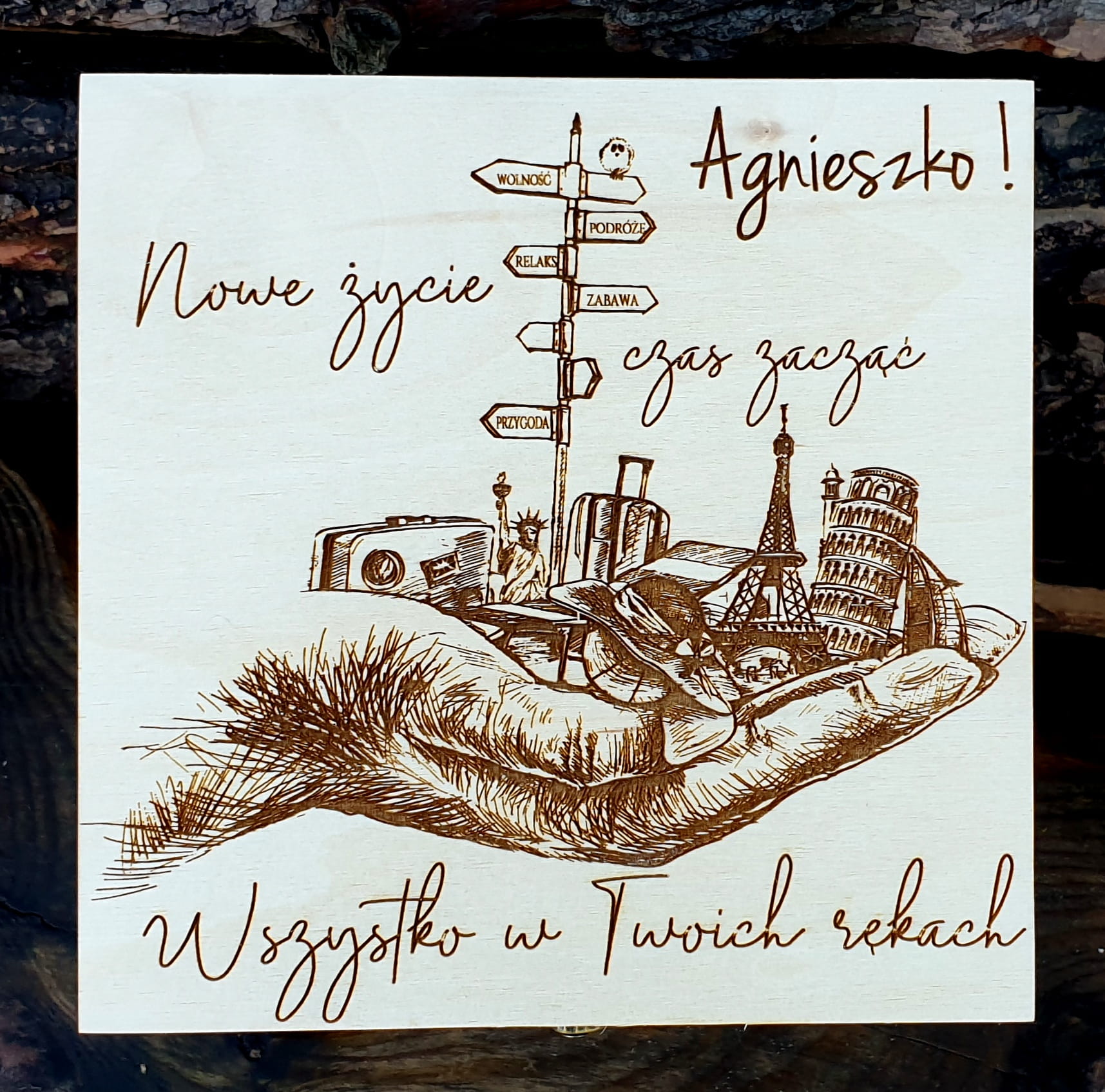 - 1szt. drewniana podstawka w wybranym grawerem,