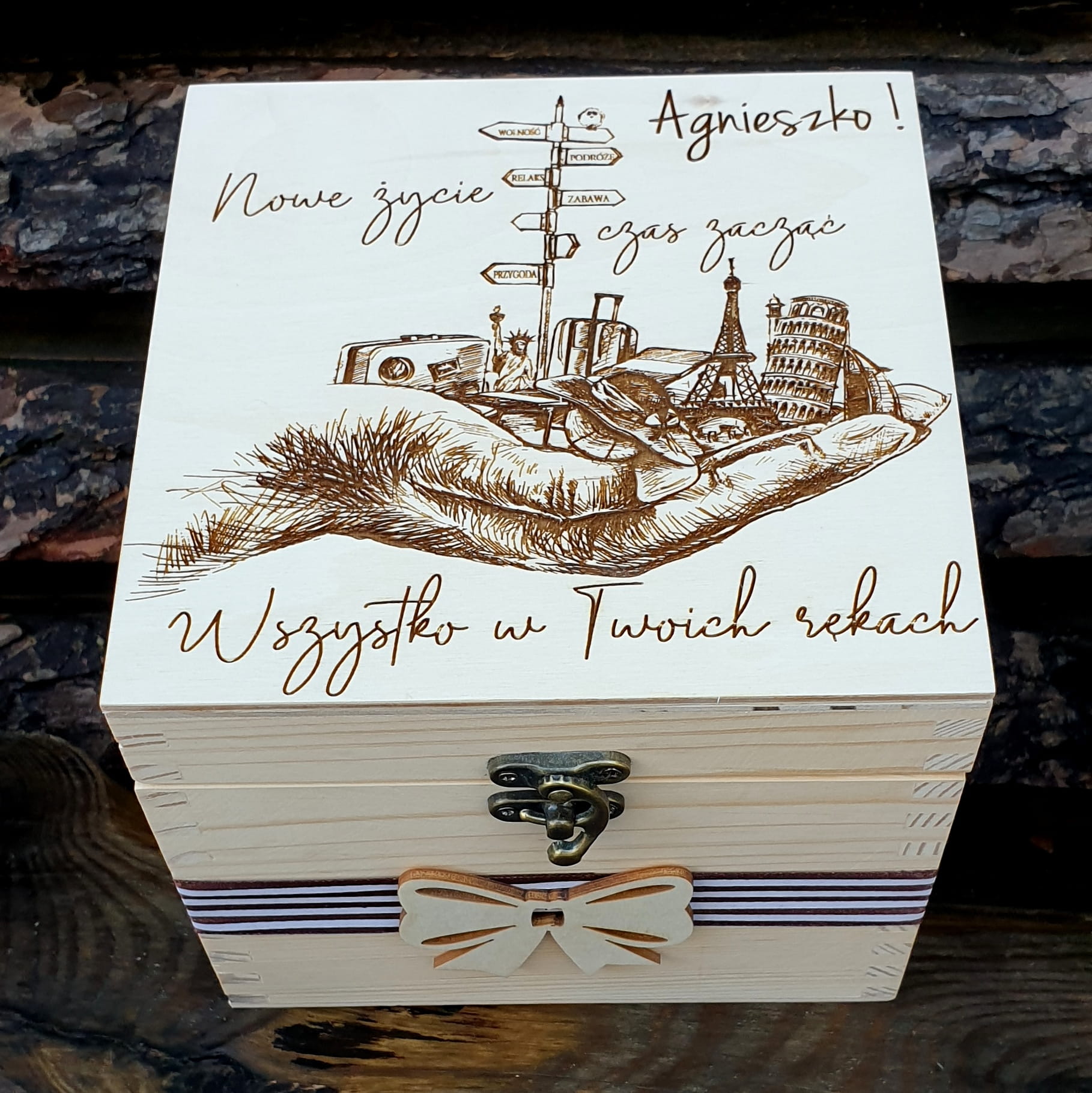 - 1szt. elegancka drewniana szkatułka do dalszego wykorzystania np. na rodzinne zdjęcia.
