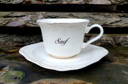 Prezent dla SZEFA,Szefowej, filiżanka z podstawką
