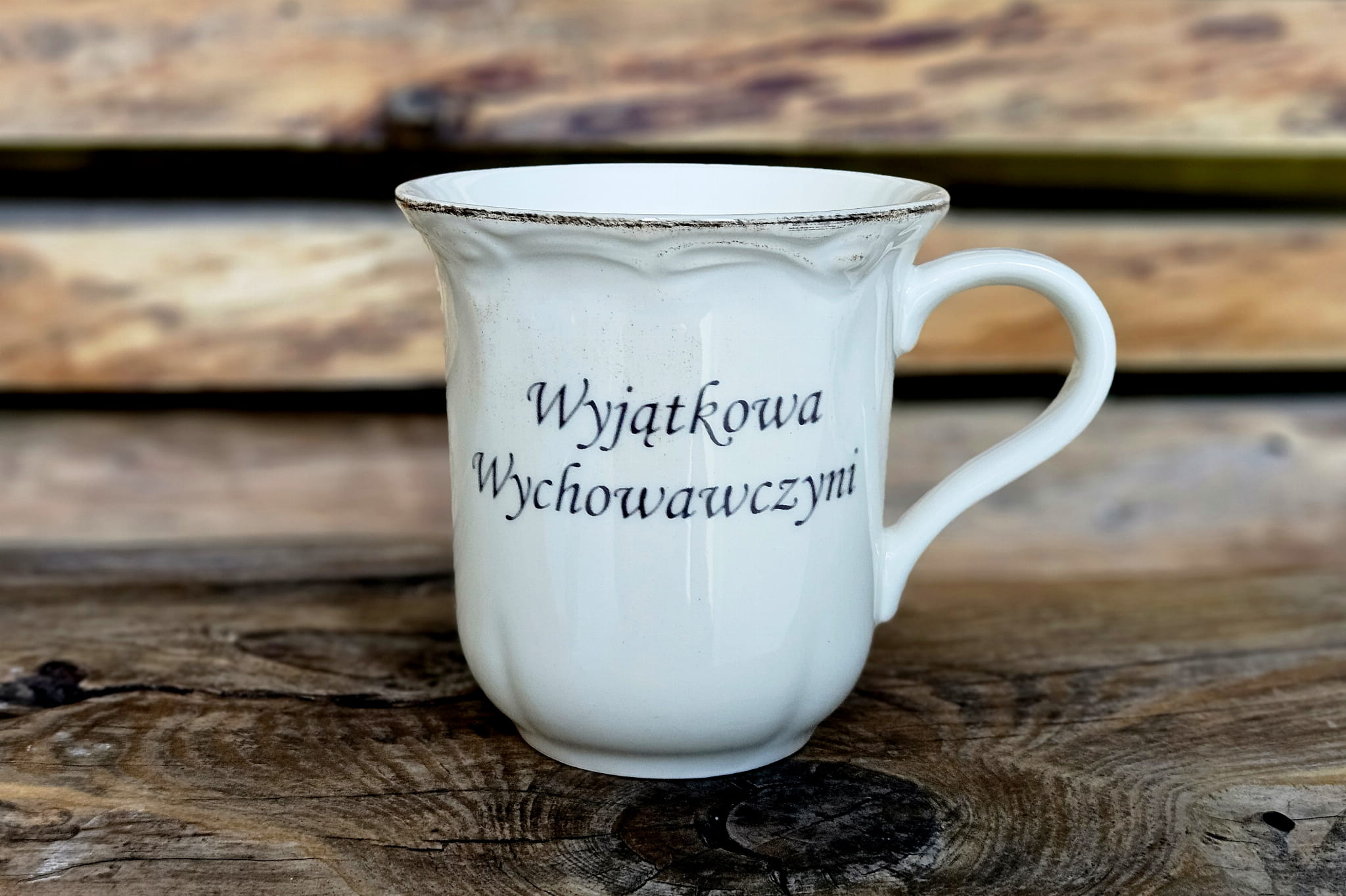 ✔ Kubek 400 ml z wybranym nadrukiem np. „Wyjątkowa Wychowawczyni”