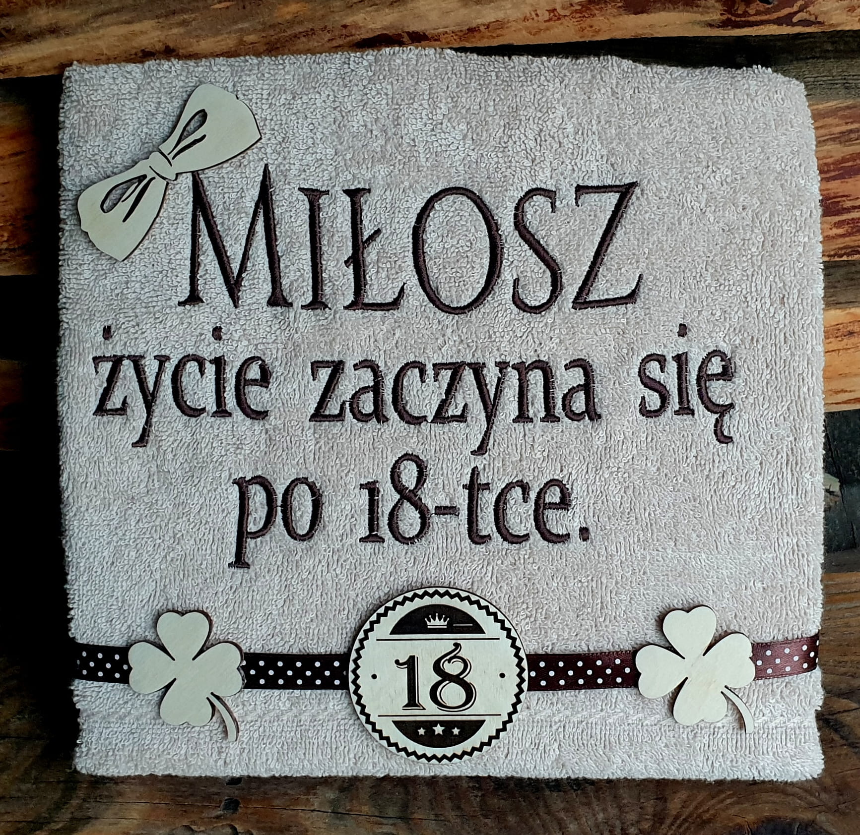 Prezent na 18 urodziny 18-tka, ręcznik haft imię