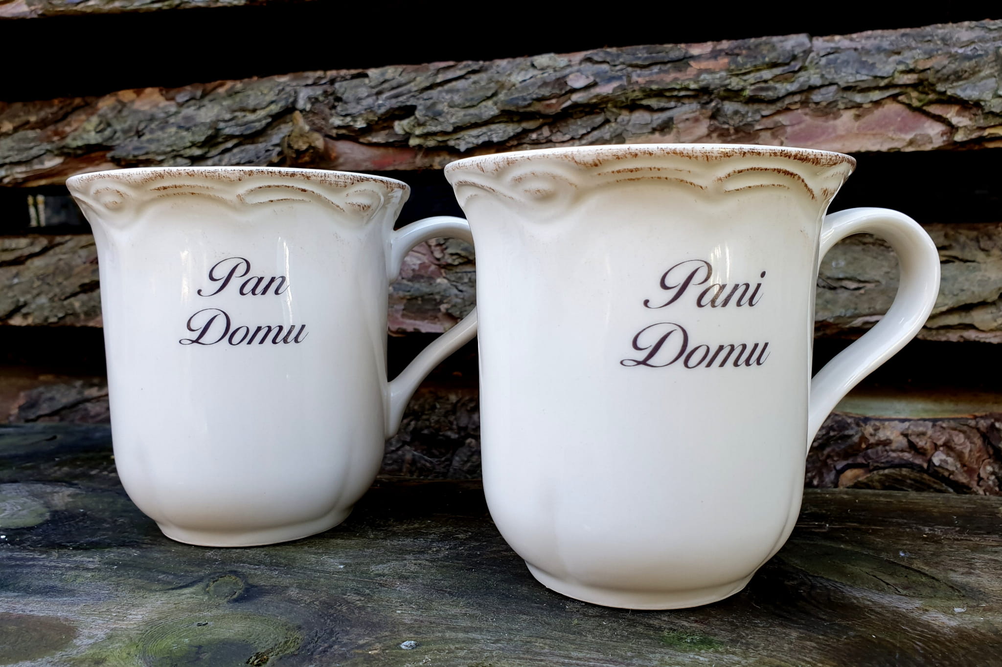 - Nadruki na kubka to - "Pani Domu" i "Pan Domu".