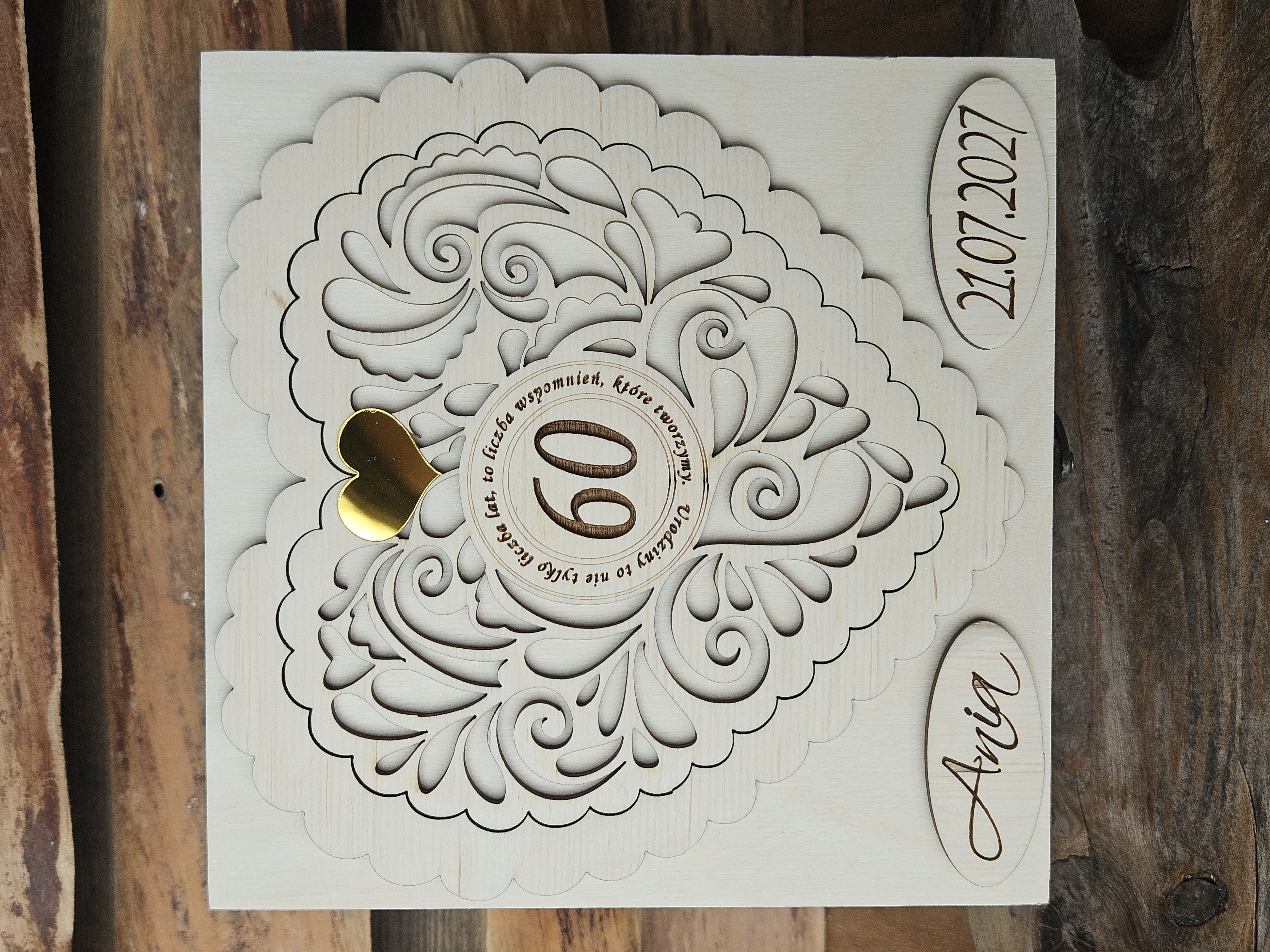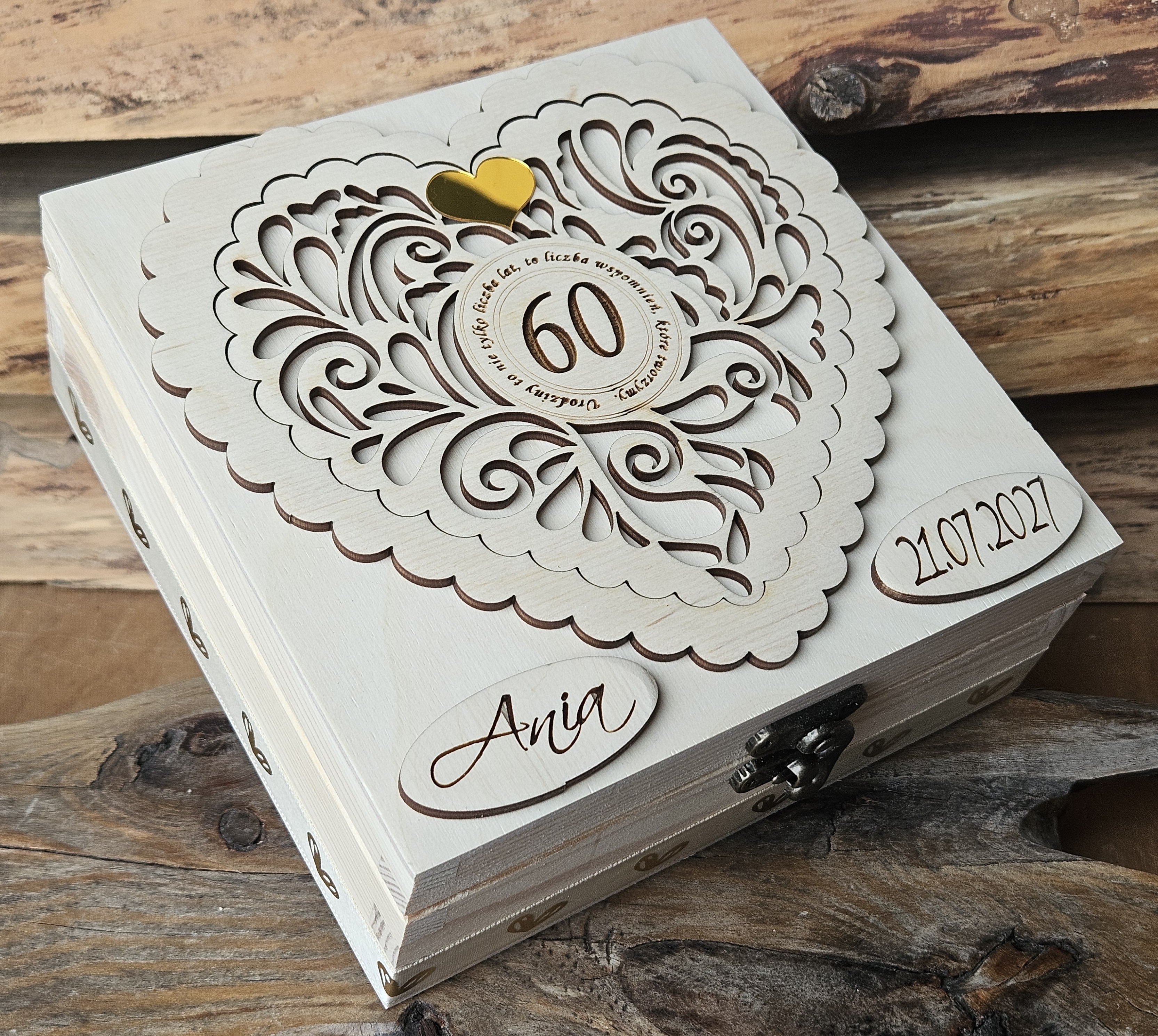 Prezent na urodziny – drewniana szkatułka z personalizacją i ażurowym sercem