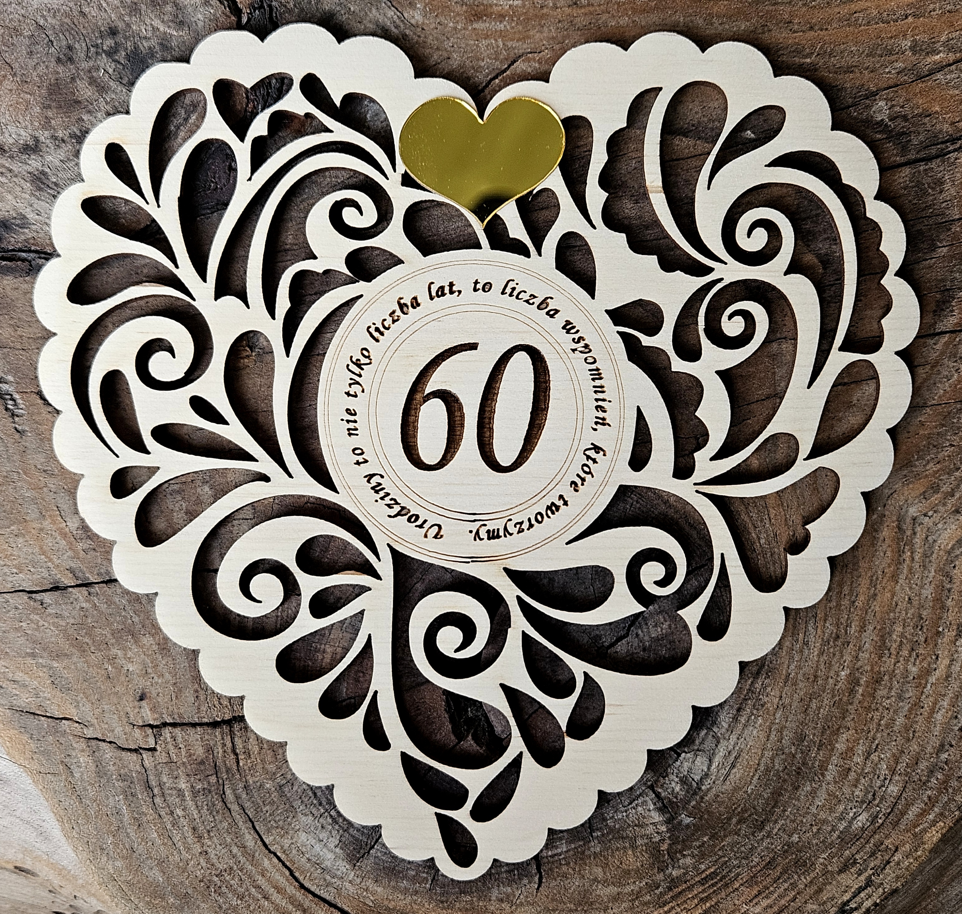 ✔ Ozdobne ażurowe serce z grawerem liczby urodzin