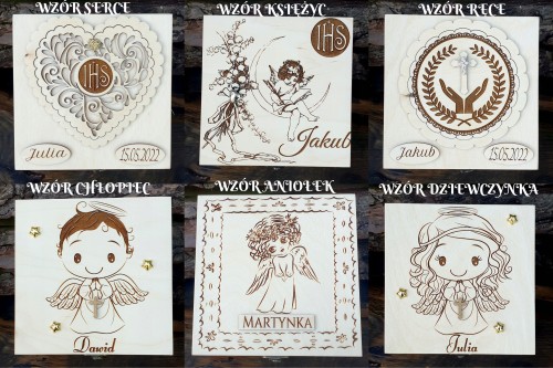 - data komunii lub tylko rok komunii (dla wzorów SERCE i RĘCE),
