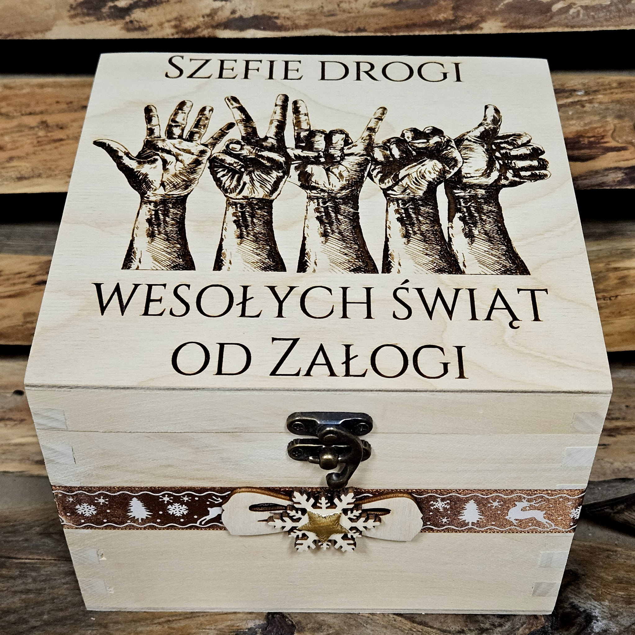 Elegancka drewniana skrzynka wraz z nietuzinkową wstążką