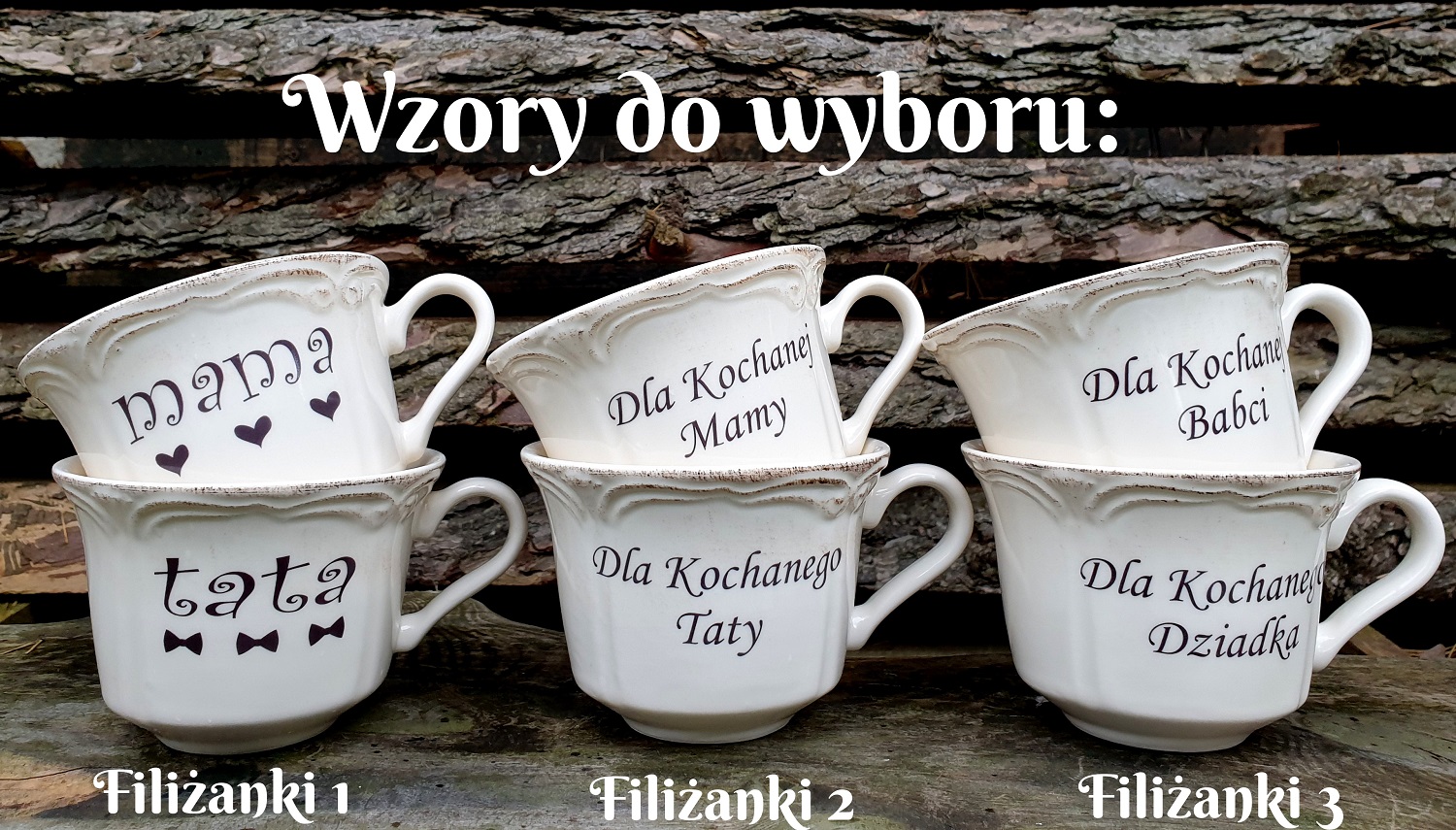 - 2szt. ceramicznych filiżanek z WYBRANYM nadrukiem z listy,