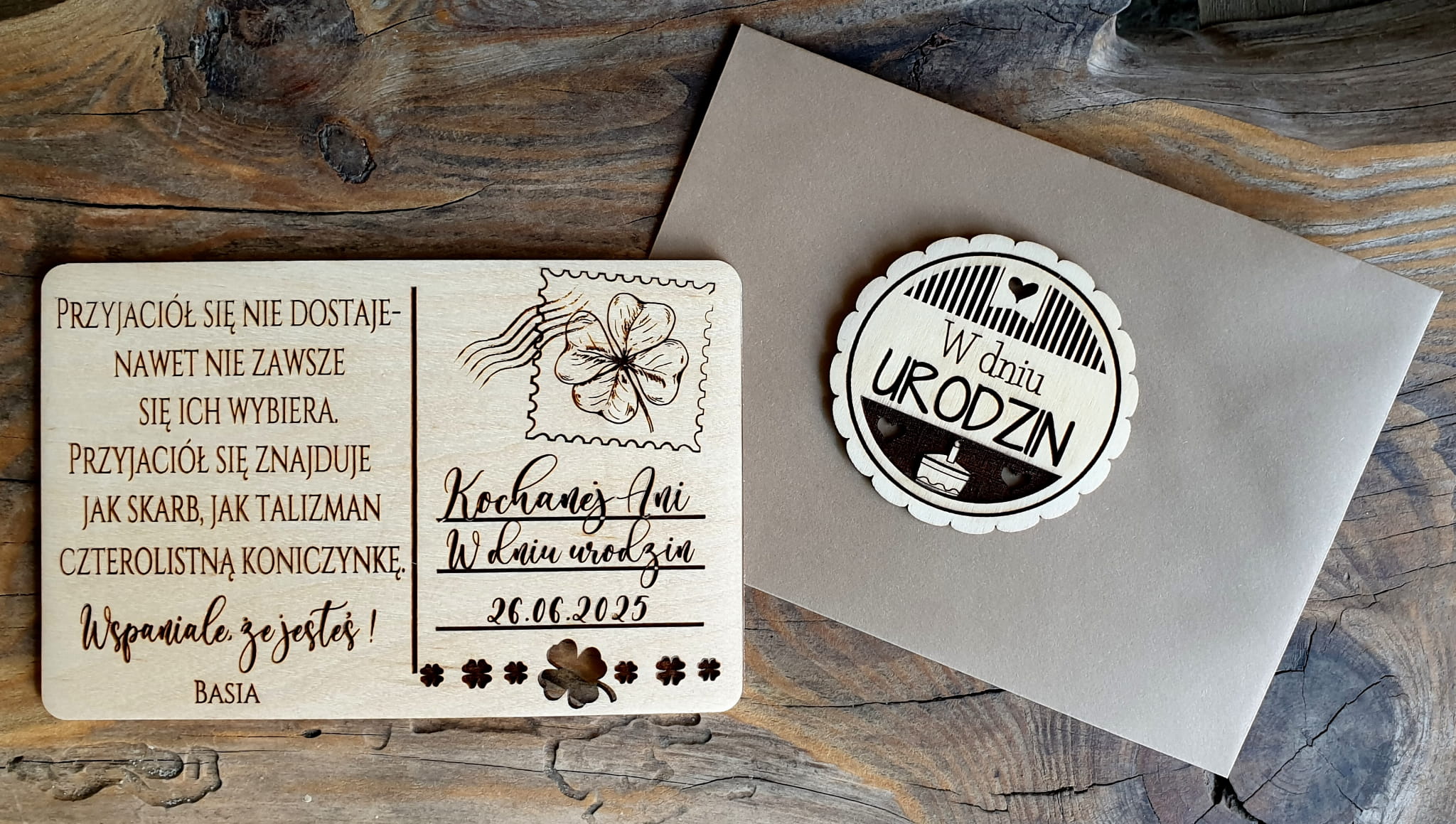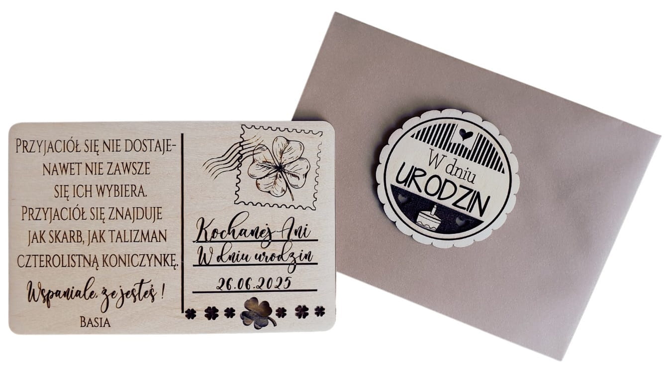 Do pocztówki z drewnie dodamy Trendy-Eco kopertę.