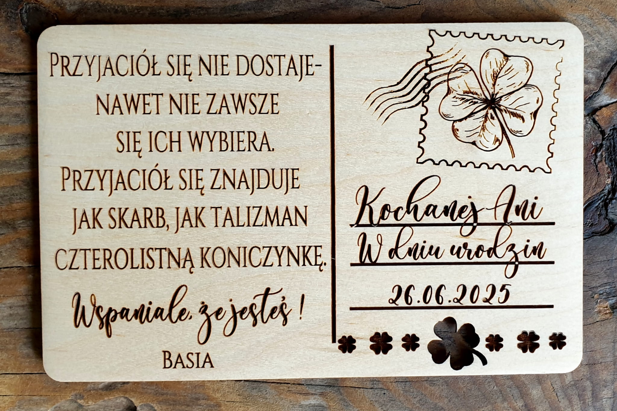 Nasze kartki wykonane są z drewna brzozowego. Gdy wykonamy profesjonalny grawer, czyścimy i szlifujemy do gładkości...i to z obu stron ;-)