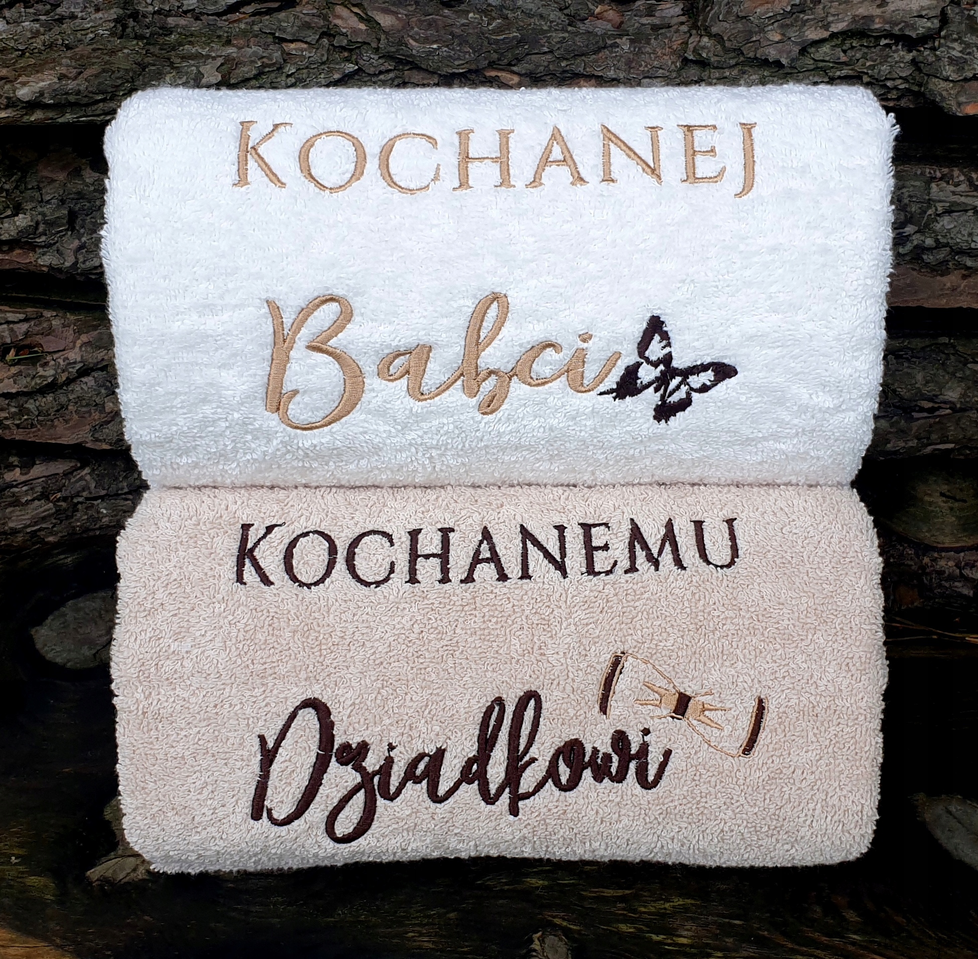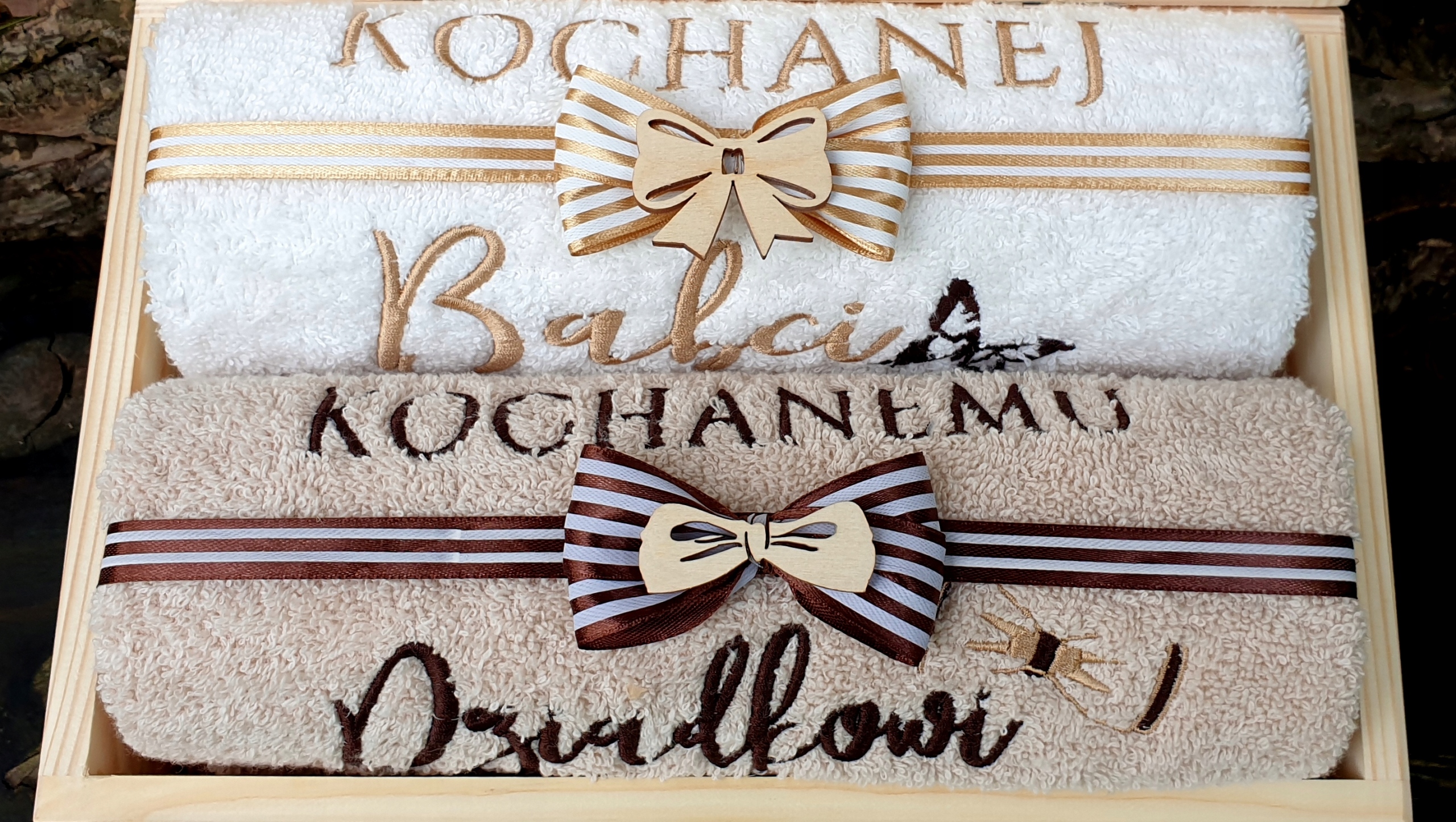 - zestaw dwóch ręczników 50x90cm z haftami,