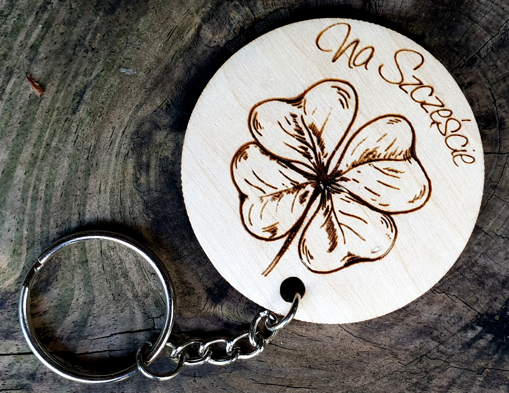 - 1szt. drewniany brelok "Na Szczęście",