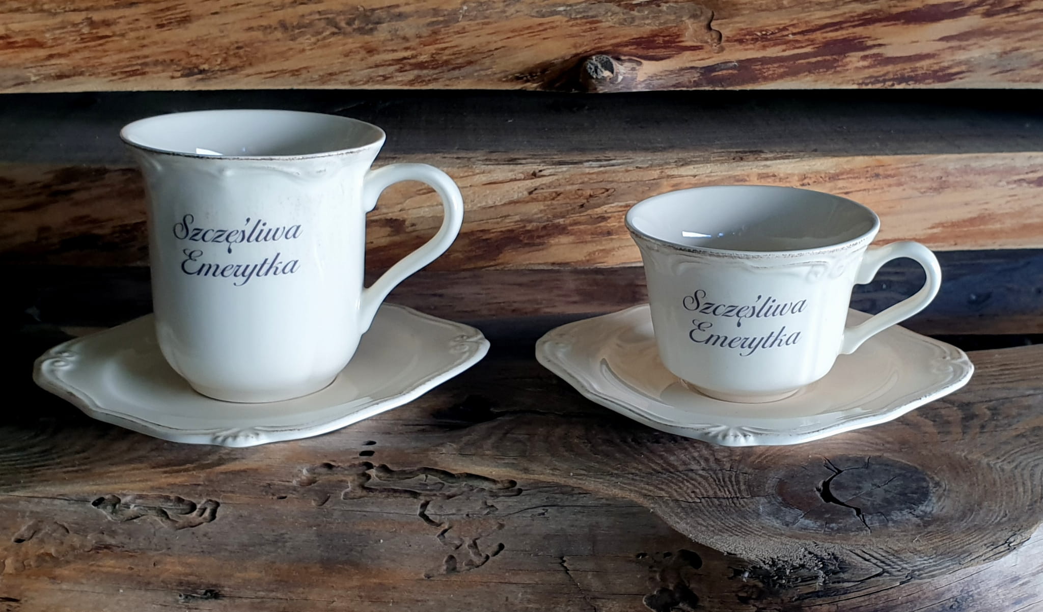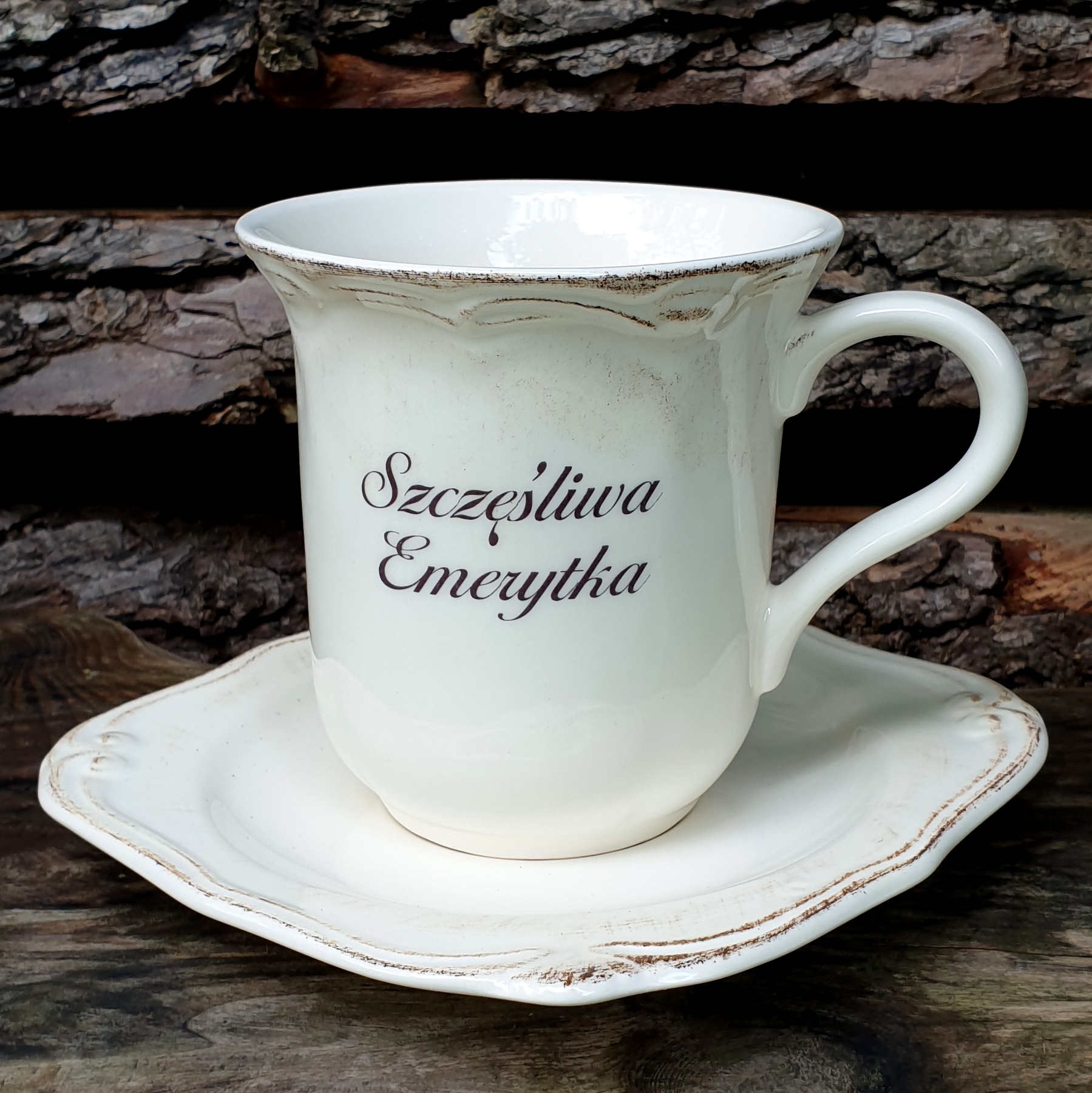 - 1szt. ceramiczny kubek lub filiżanka z nadrukiem dla EMERYTKI lub EMERYTA,