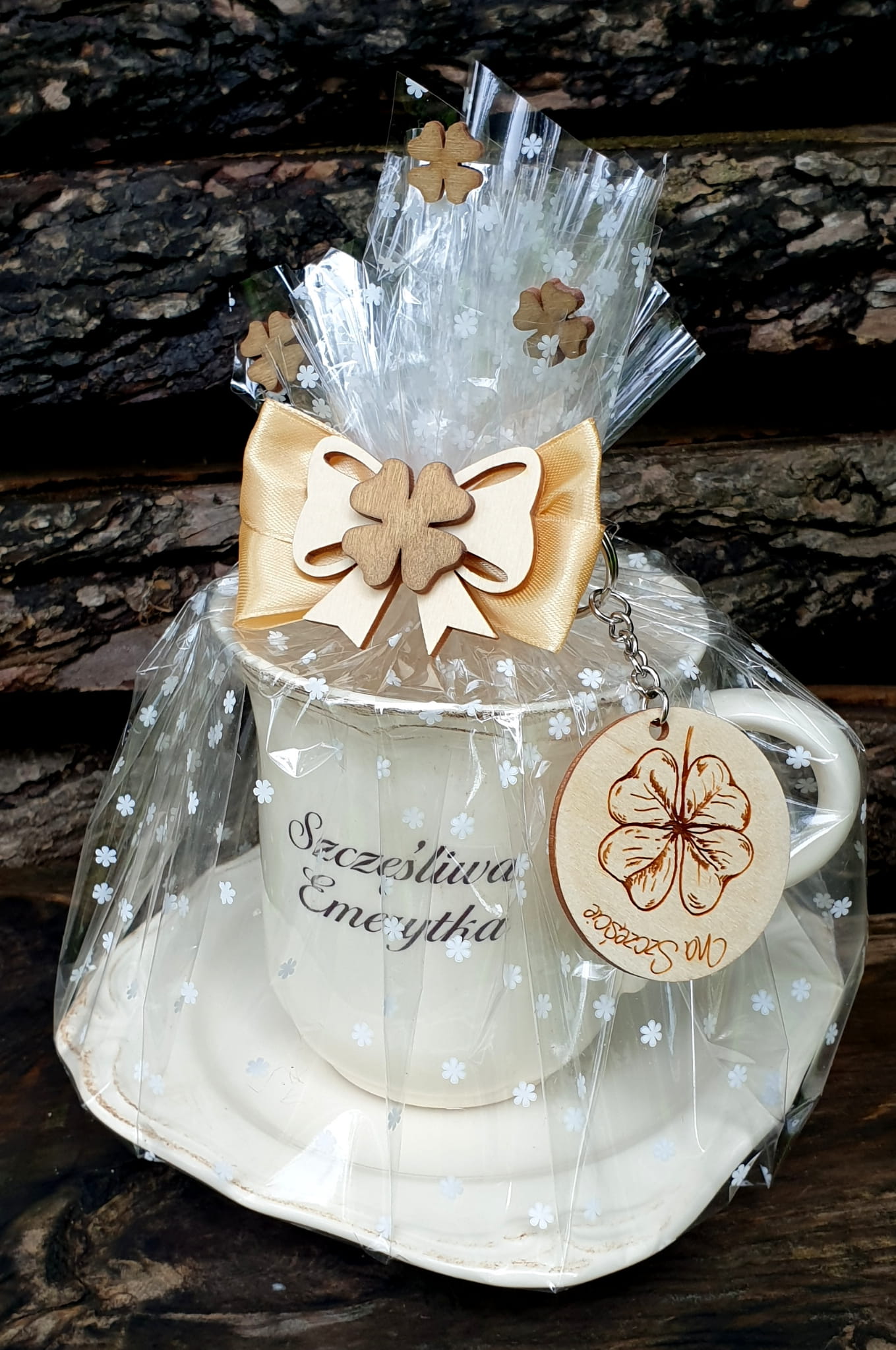 Komplet zapakowany jest w ozdobny celofan, dzięki czemu otrzymujesz gotowy podarunek już do wręczenia.