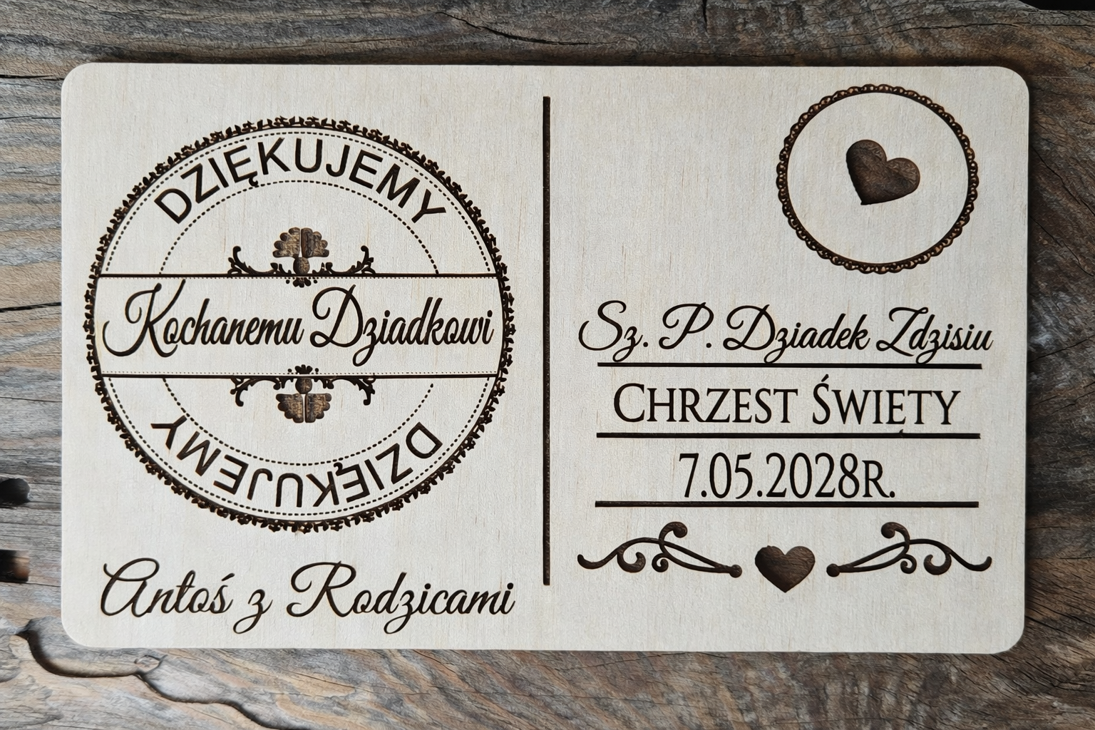 ✔ Drewniana kartka-magnes to pamiątka i dekoracja (np. na lodówkę lub tablicę magnetyczną)