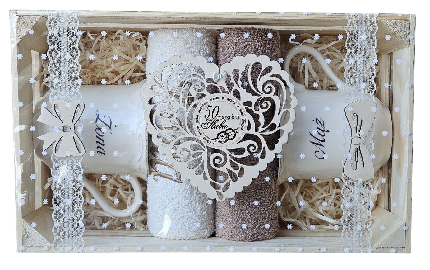 Zestaw prezentowy Rocznica Ślubu Mąż Żona kubki 400 ml ręczniki skrzynka